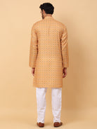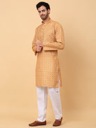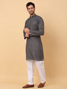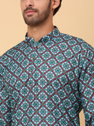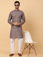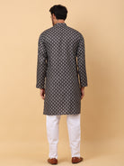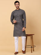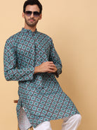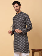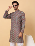 Straight Long kurta, has a mandarin collar, long sleeves, side pockets, button closure, side slits, straight hem