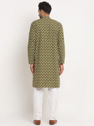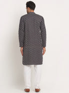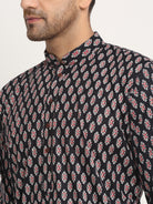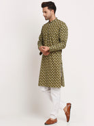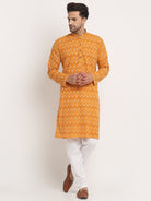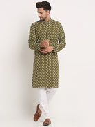 Men's Cotton Jaipuri Printed Knee Length Kurta Pyjama Set