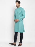 Straight Long kurta, has a mandarin collar, long sleeves, side pockets, button closure, side slits, straight hem