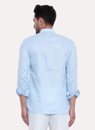 Straight short kurta, has a mandarin collar, Roll Up long sleeves, side pockets, button closure, side slits, straight hem