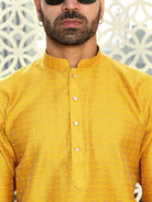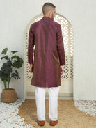 This Men's Silk Woven Design Jacquard Kurta brings timeless elegance to your wardrobe. Crafted from luxurious silk, it features a rich woven jacquard design that adds texture and sophistication to the piece. The long sleeves provide extra coverage, while the button closure enhances the kurta's classic appeal. Designed with practicality in mind, the side pockets offer convenience, and the straight-cut, knee-length fit ensures a modern yet traditional silhouette. Perfect for weddings, festive occasions, or upscale gatherings, this kurta is the ideal blend of comfort and high-end style.