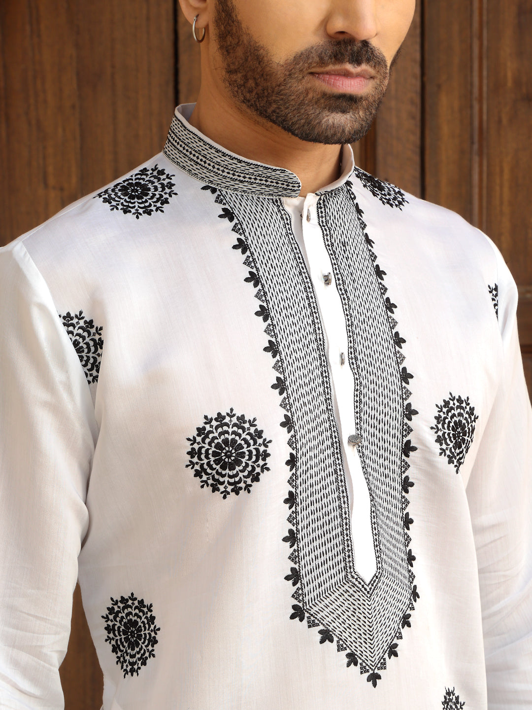 LUXE- Cotton Silk Neck White Embroidered Paisley Kurta