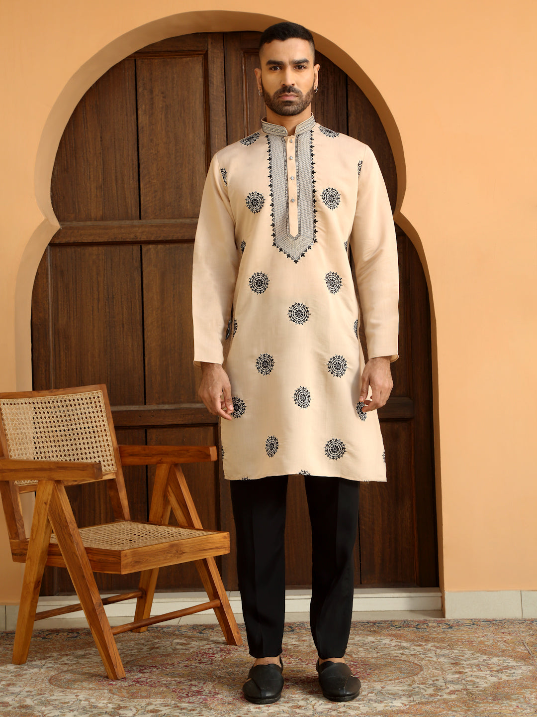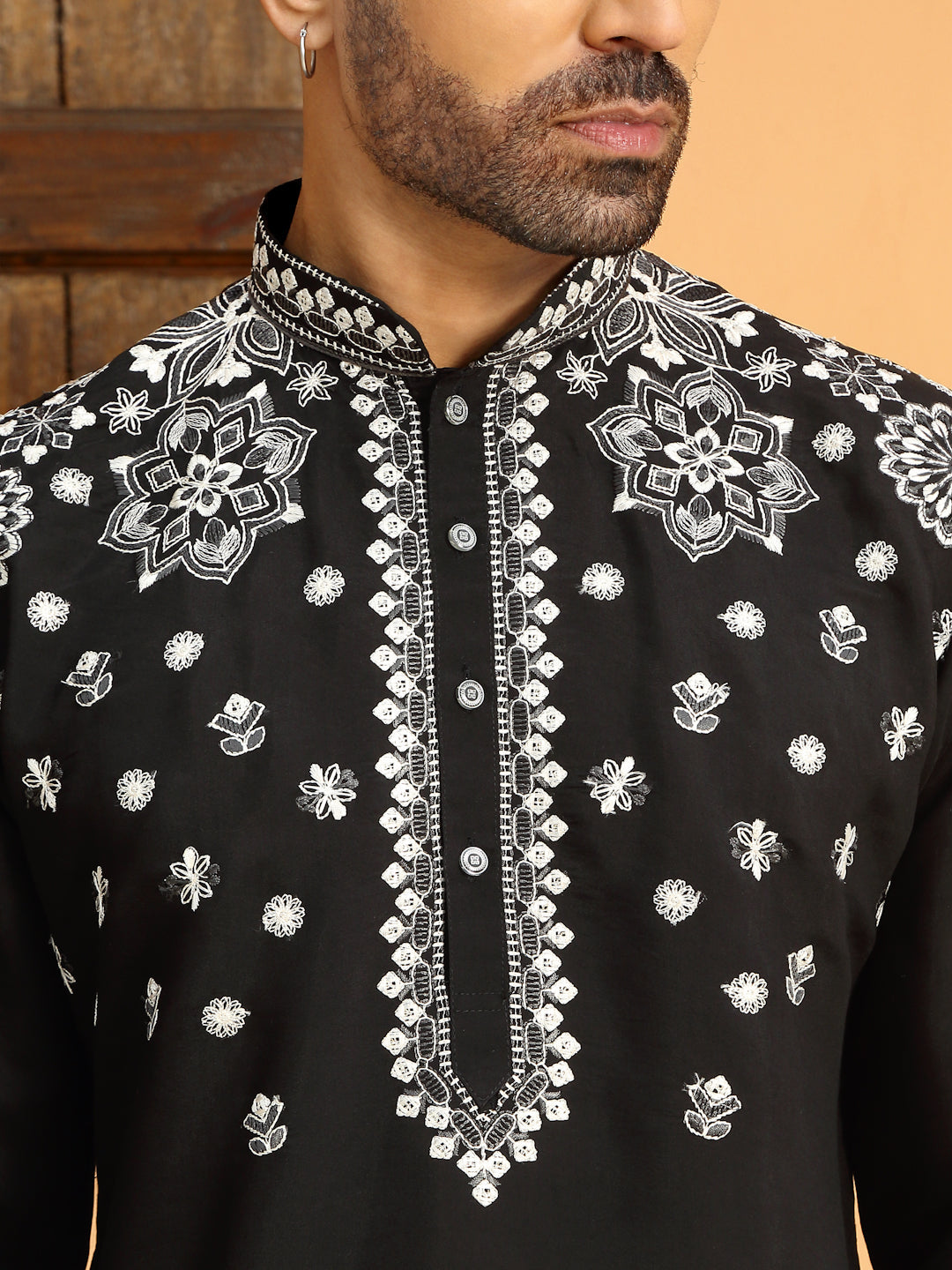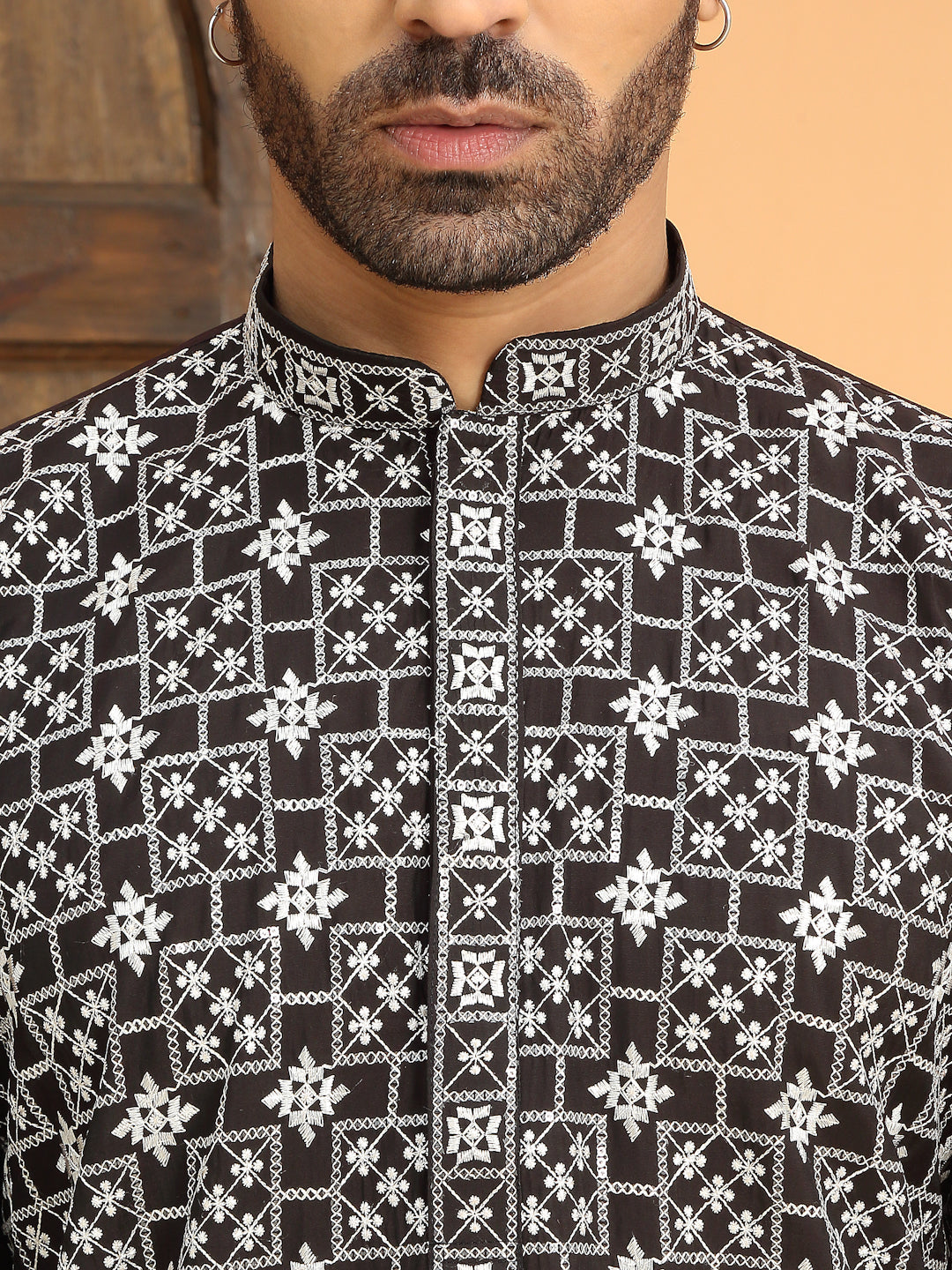 LUXE- Ethnic Motifs Embroidered Cotton Silk Kurta With Cotton Black Trouser Pant