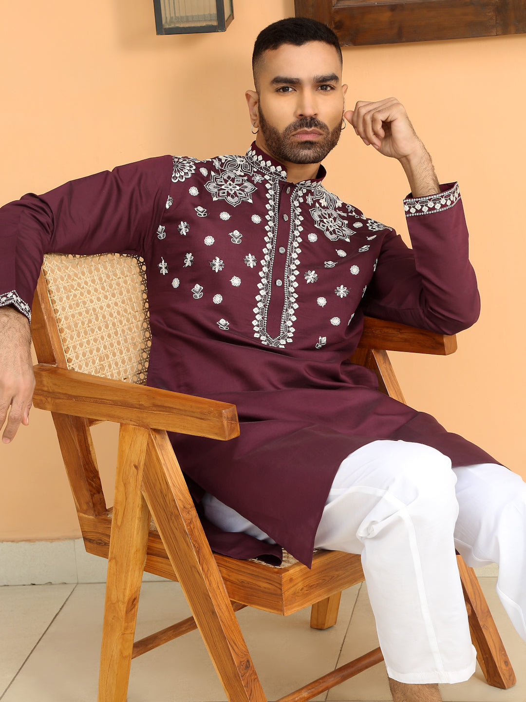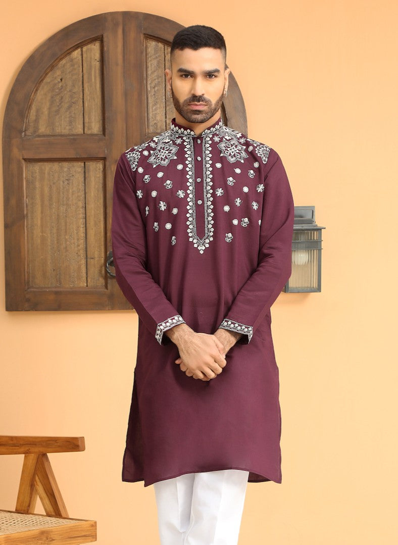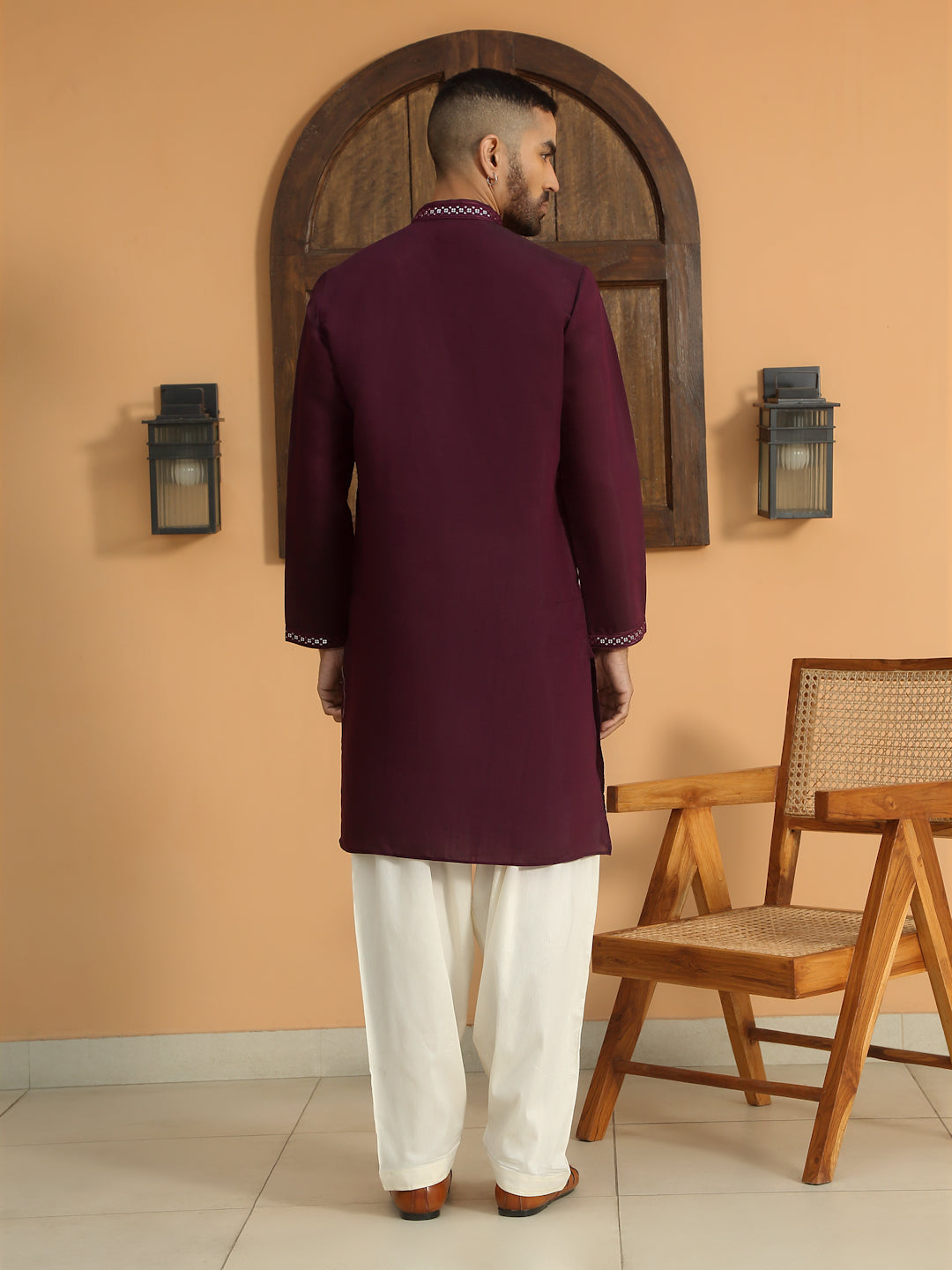 LUXE- Cotton Silk Geometric Embroidery Kurta