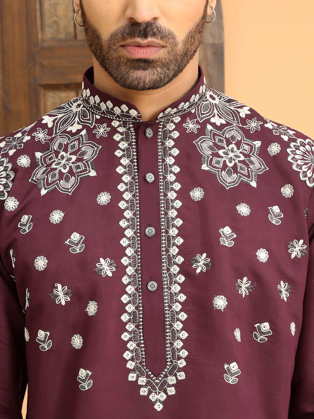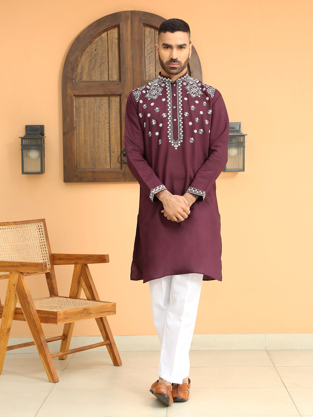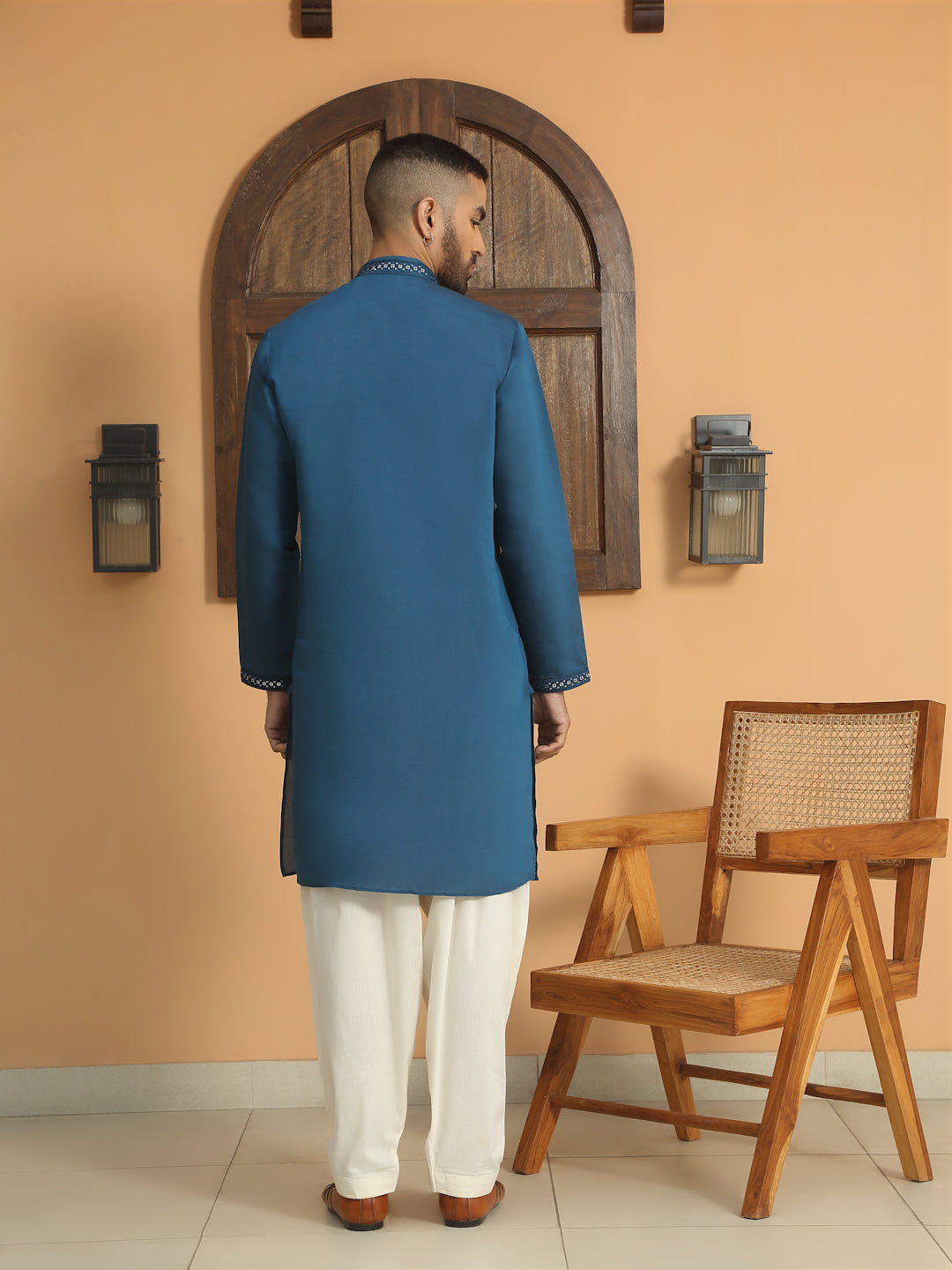 LUXE- Cotton Silk Neck Embroidered Paisley Kurta With cotton Trouser Pant