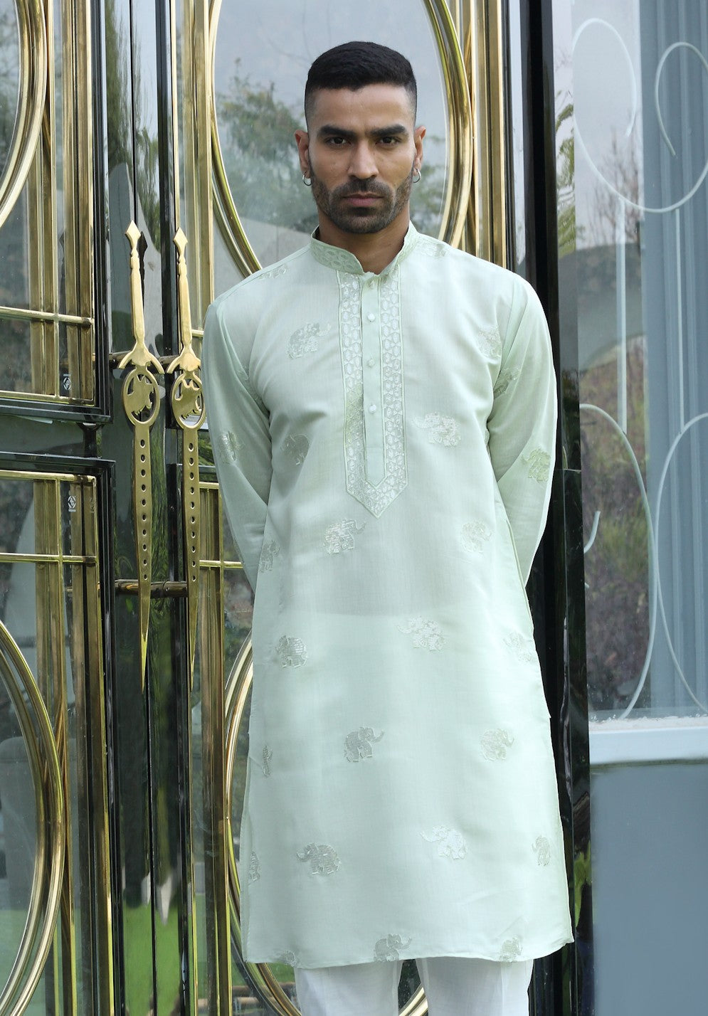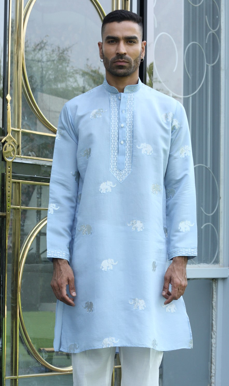 LUXE- Cotton Silk Yoke Design Elephant Embroidered Kurta