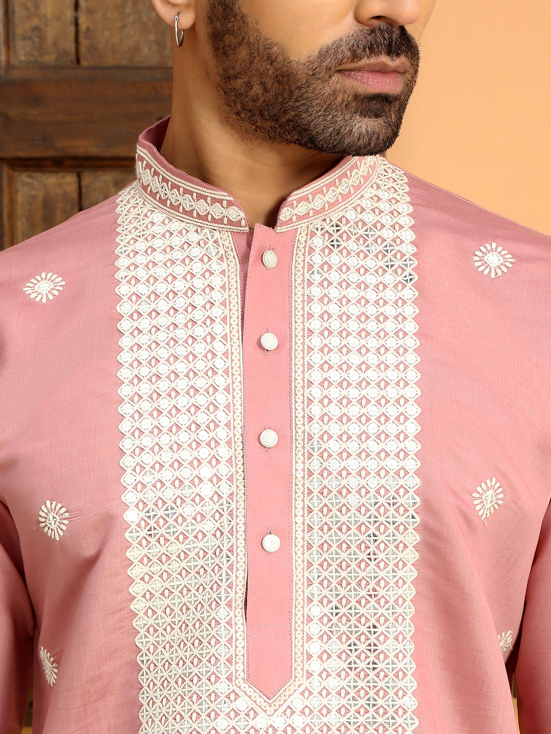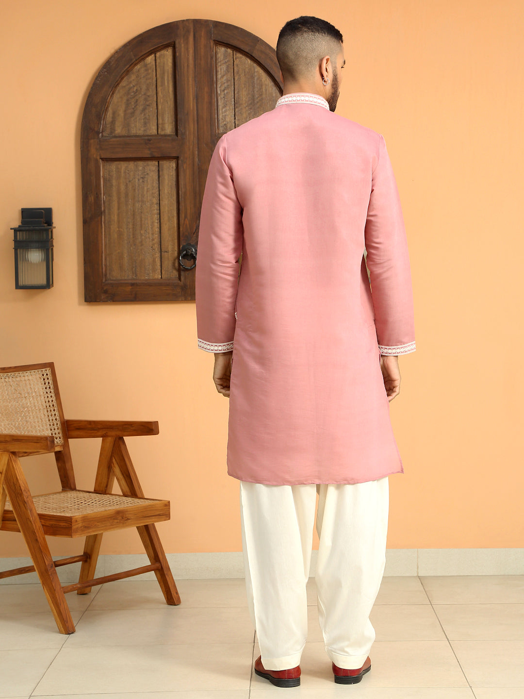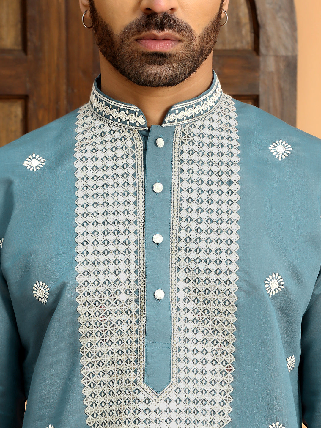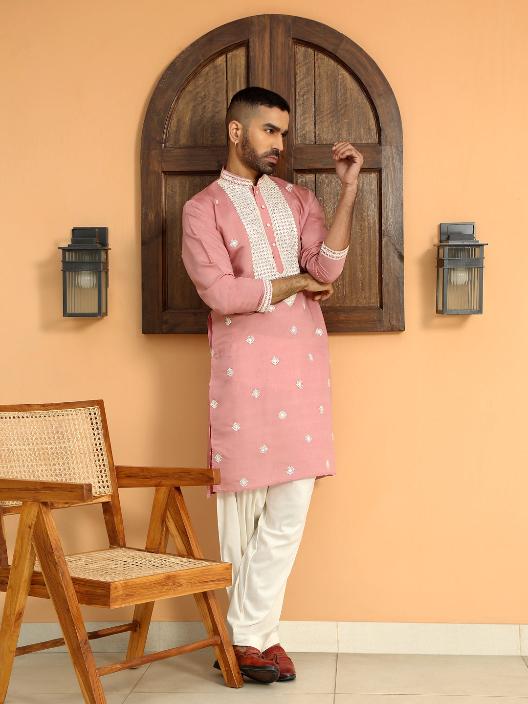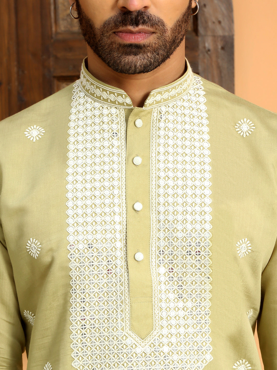 LUXE- Men Cotton Embroidered Sequenced Pathani Kurta with White Salwar set