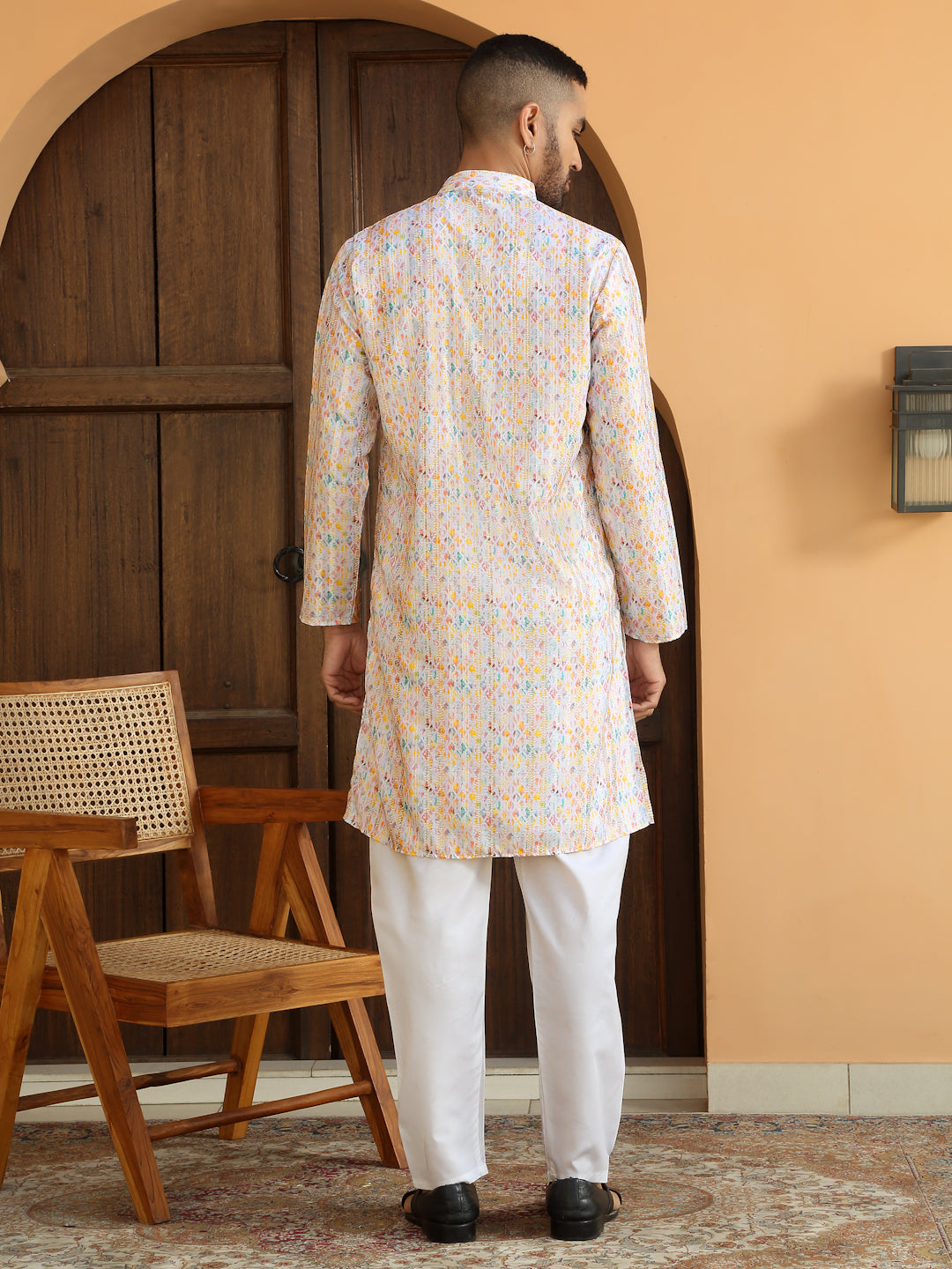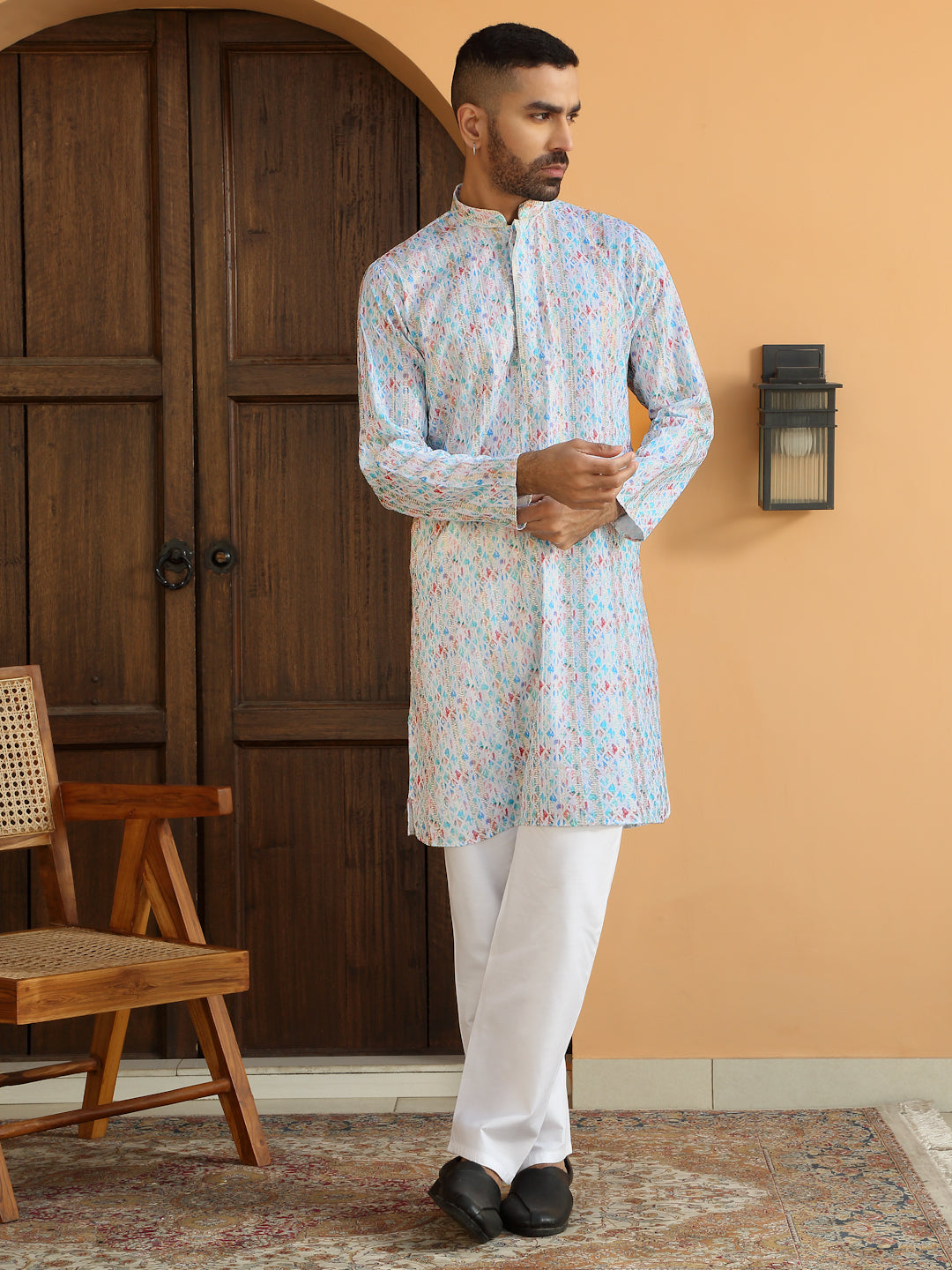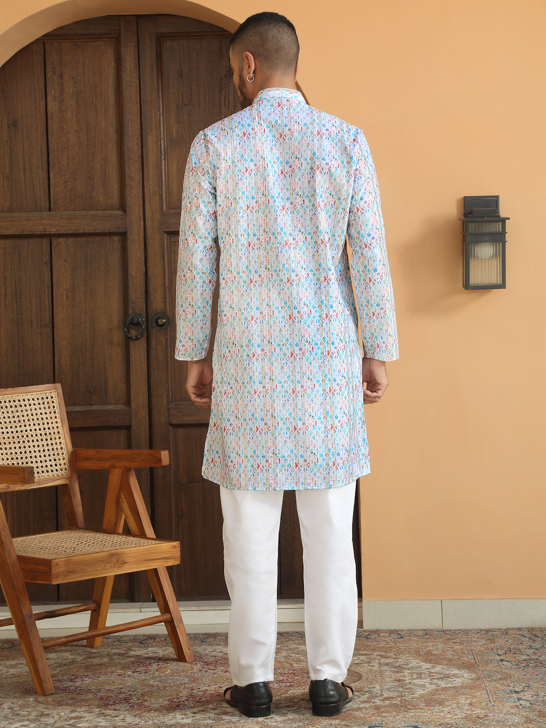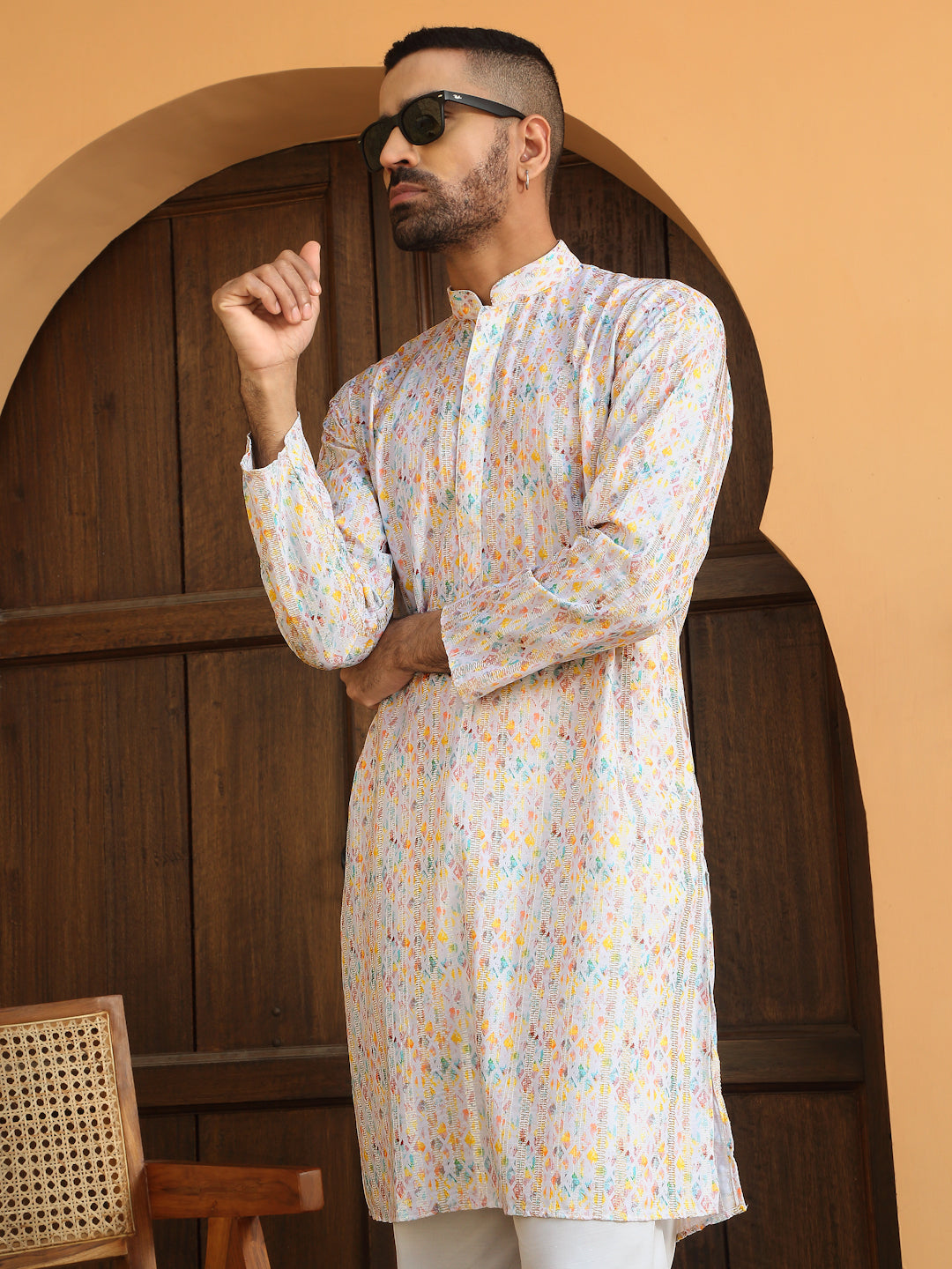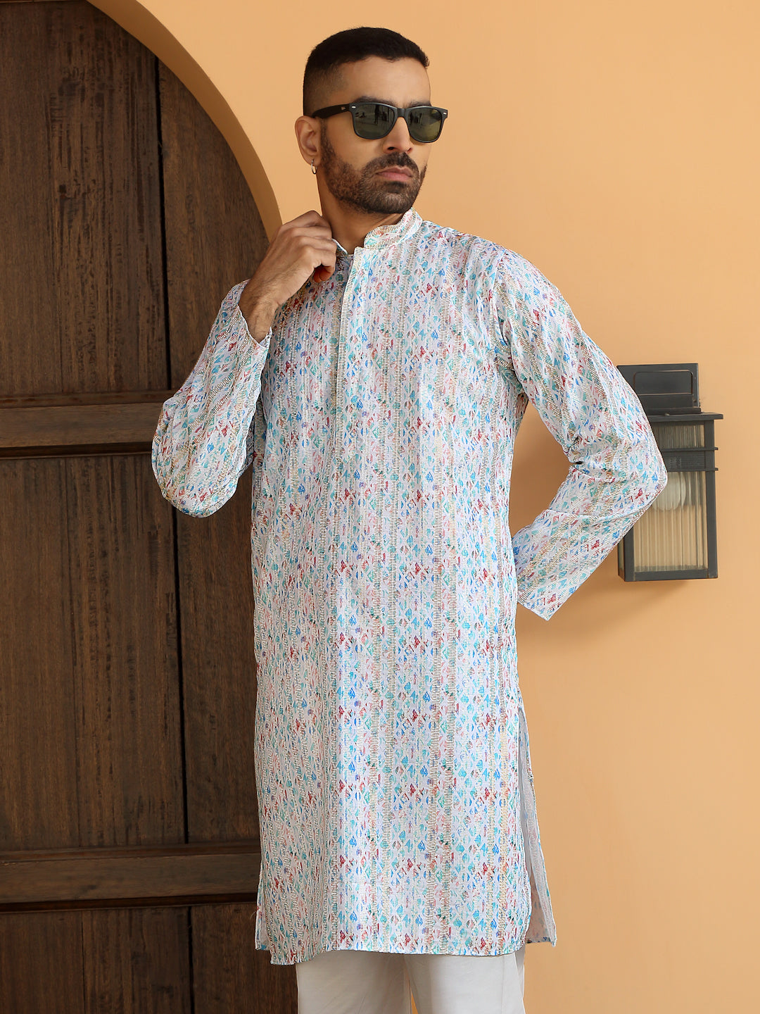 Cotton Zari Embroidered Chikan Floral Print Kurta