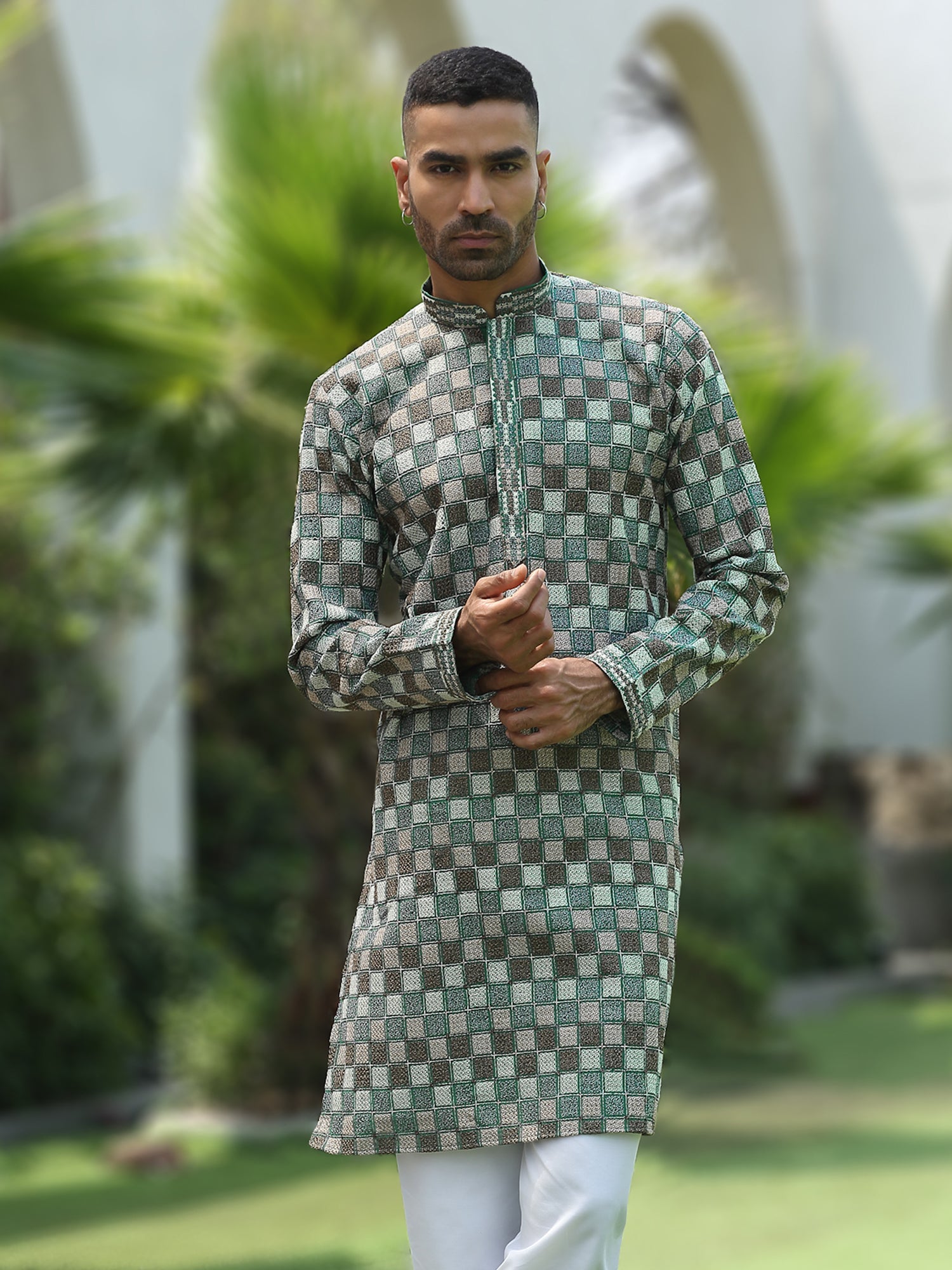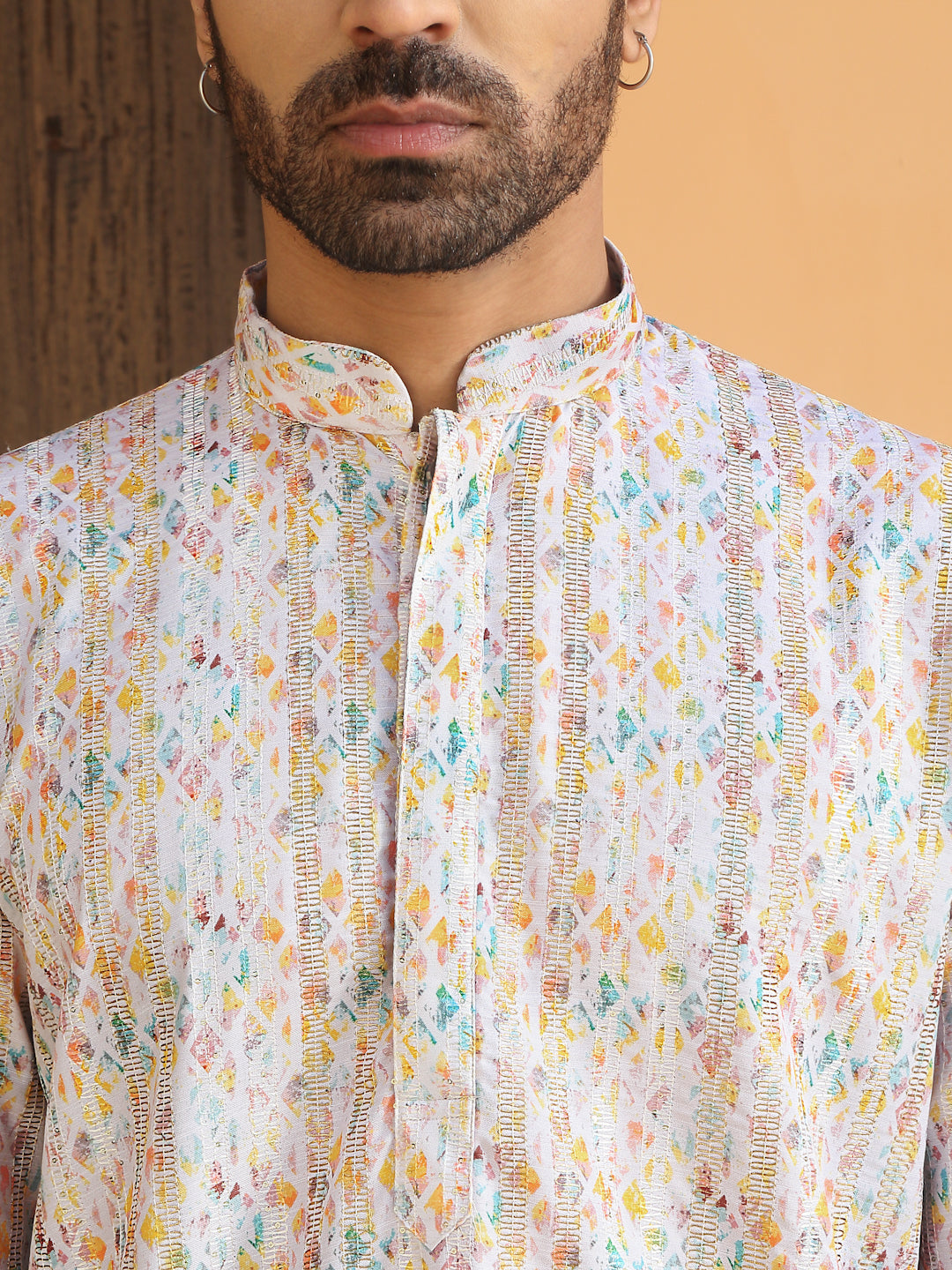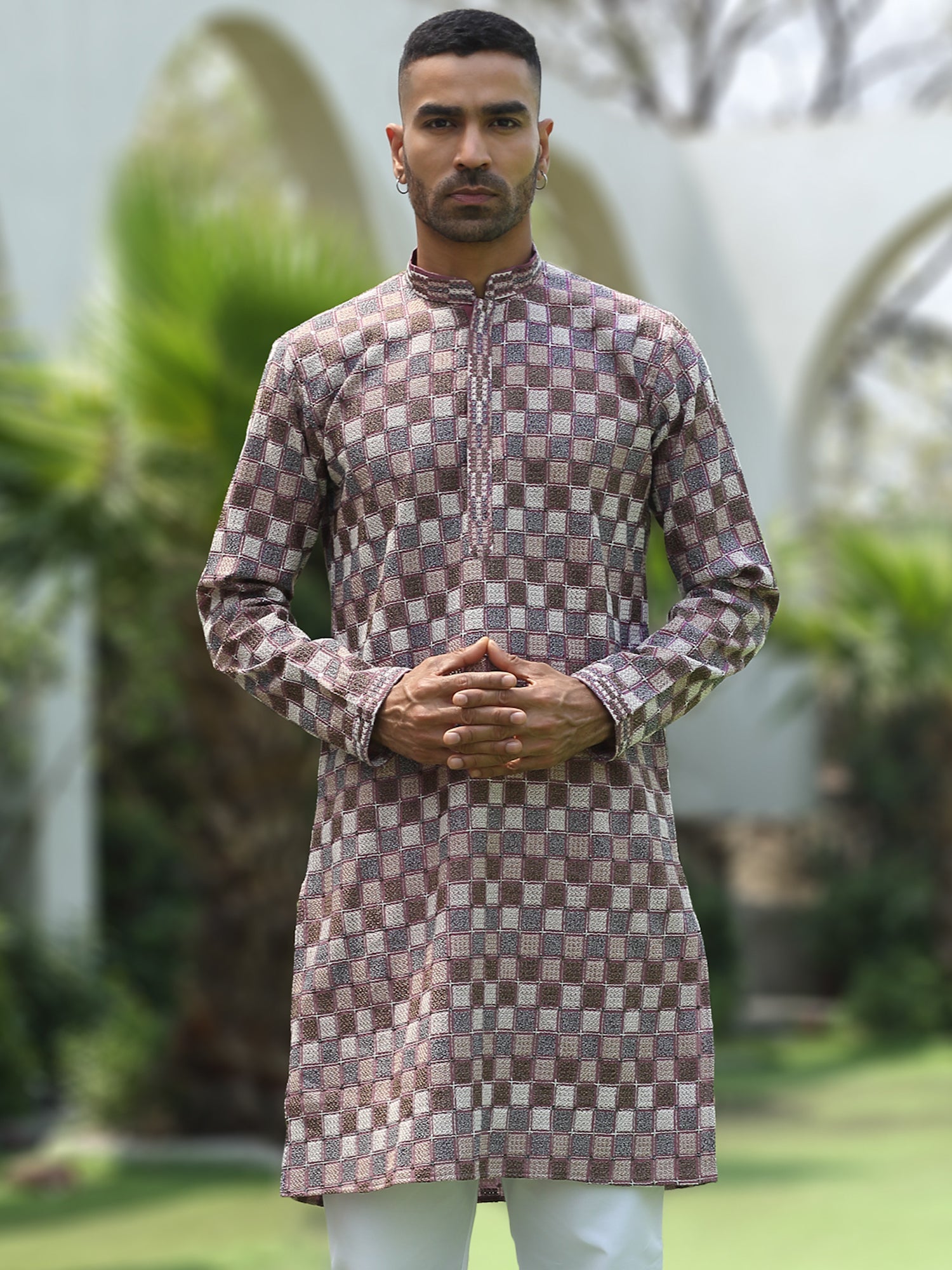 Jacquard Woven Design Paisley Kurta & White Pyjama Set
