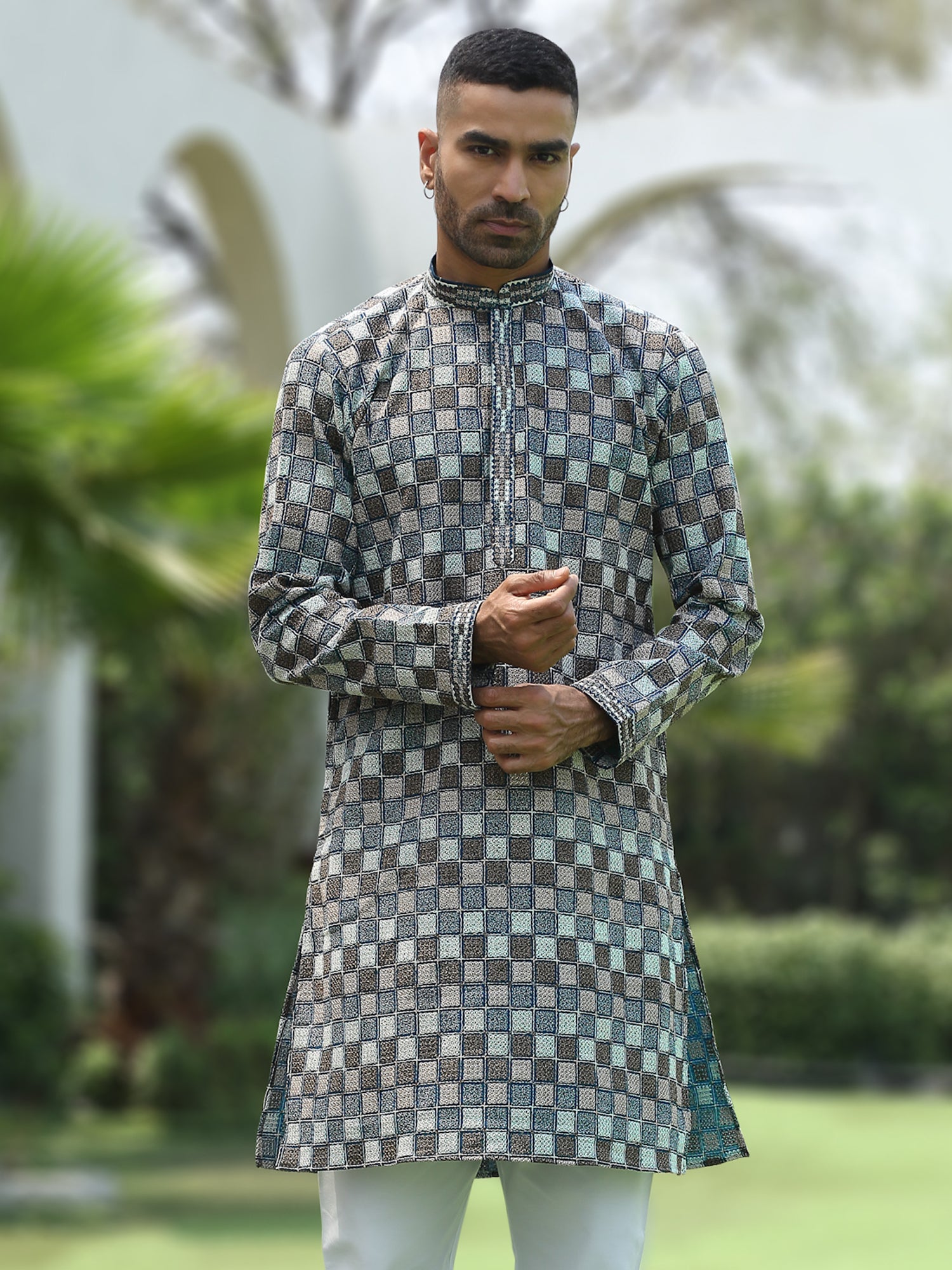 Cotton Rayon Embroidered Chikankari Sequinned Kurta