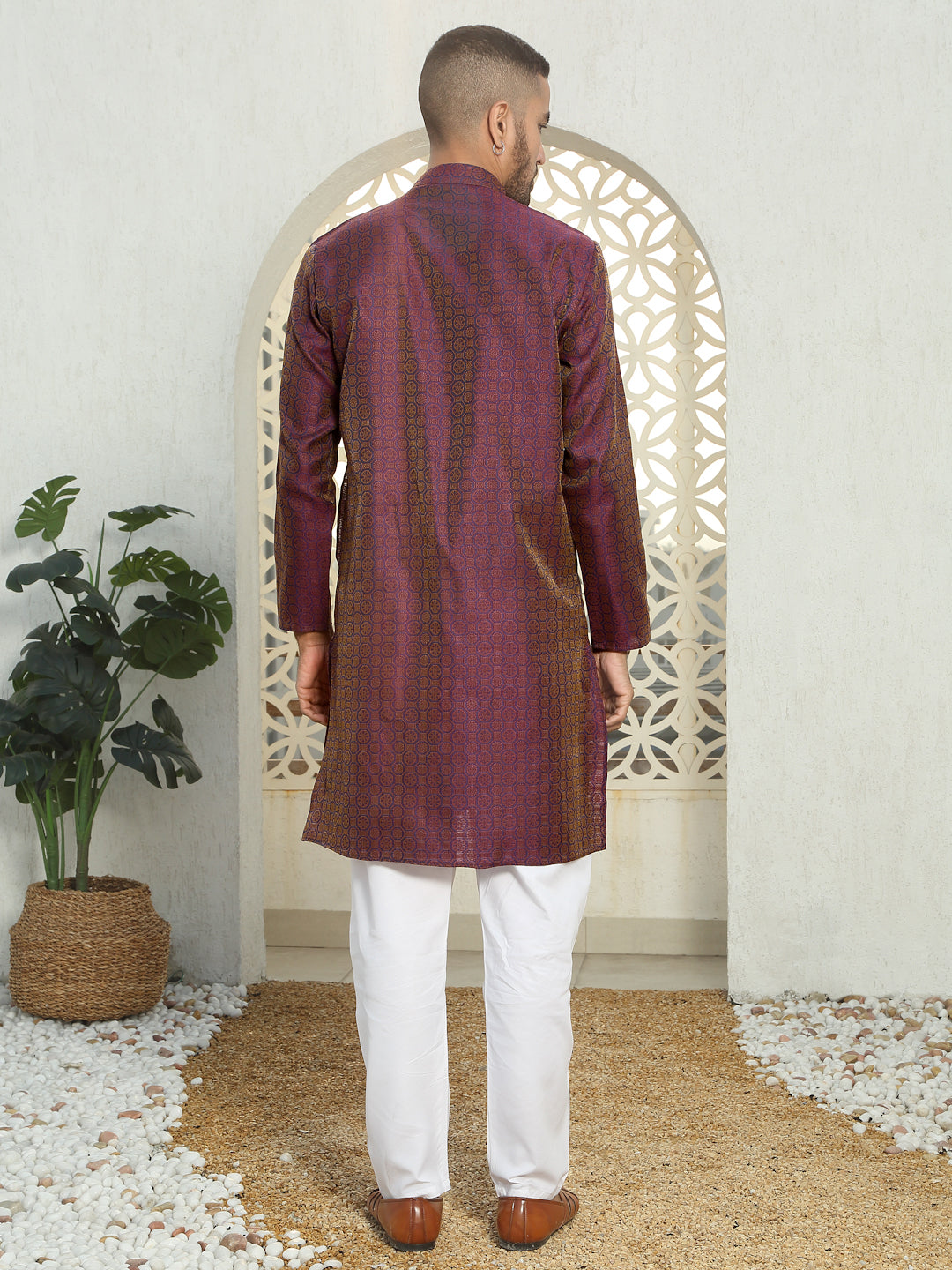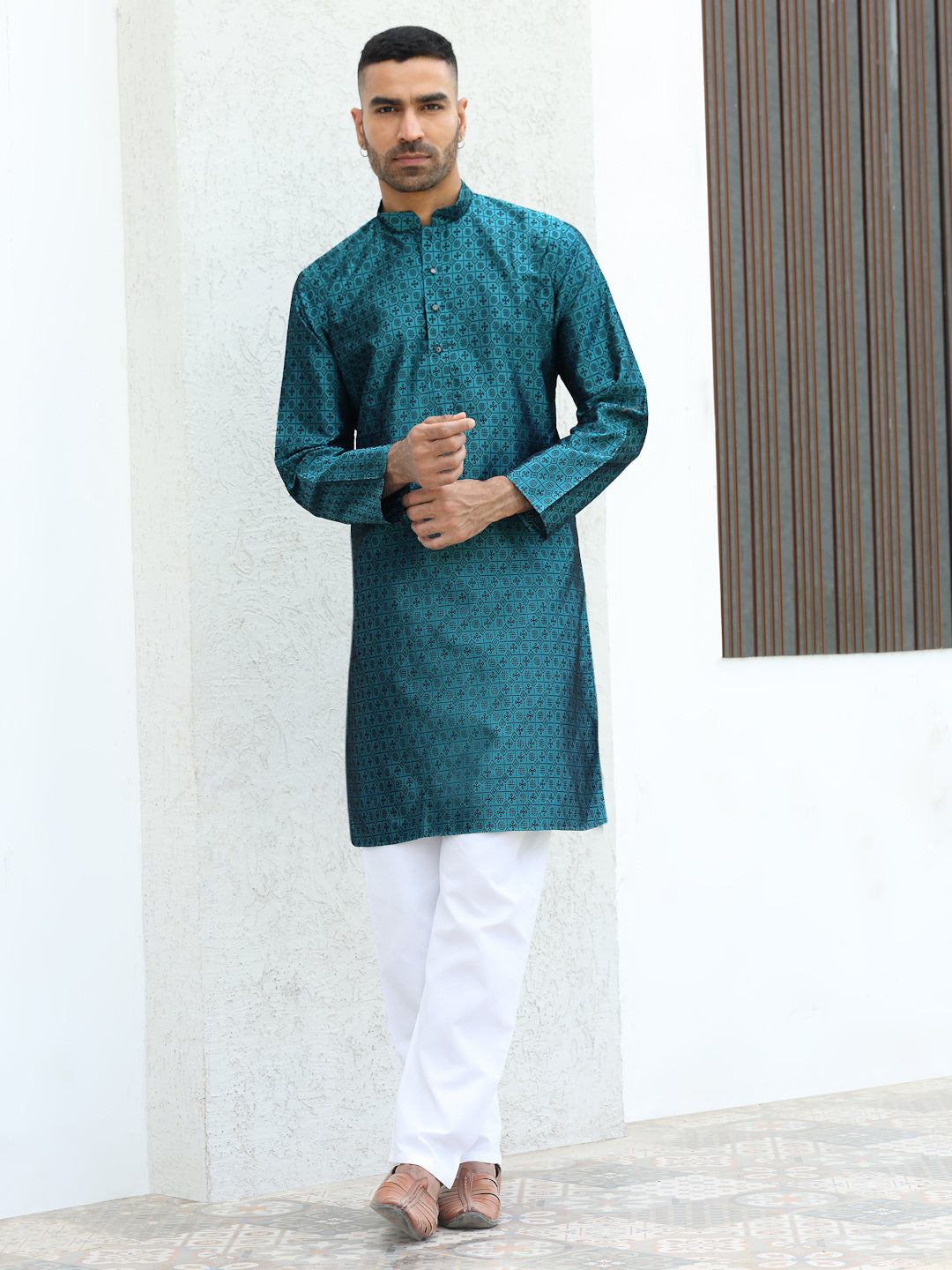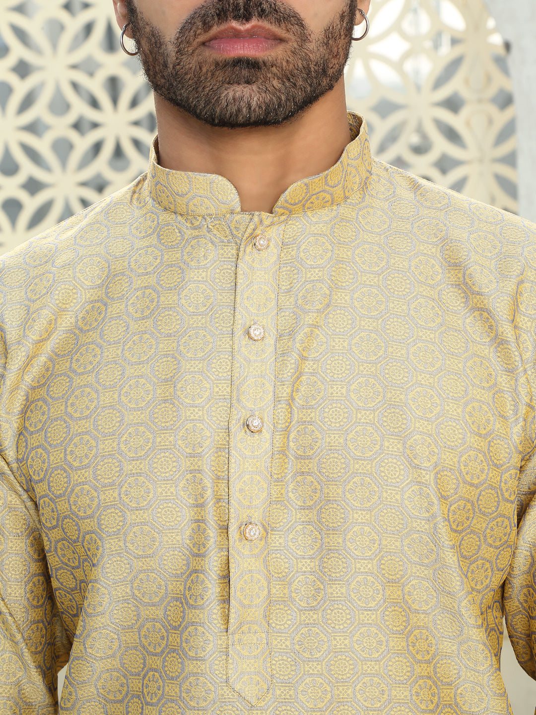 Silk Jacquard Kurta With White Elastic Waistband Pyjama set