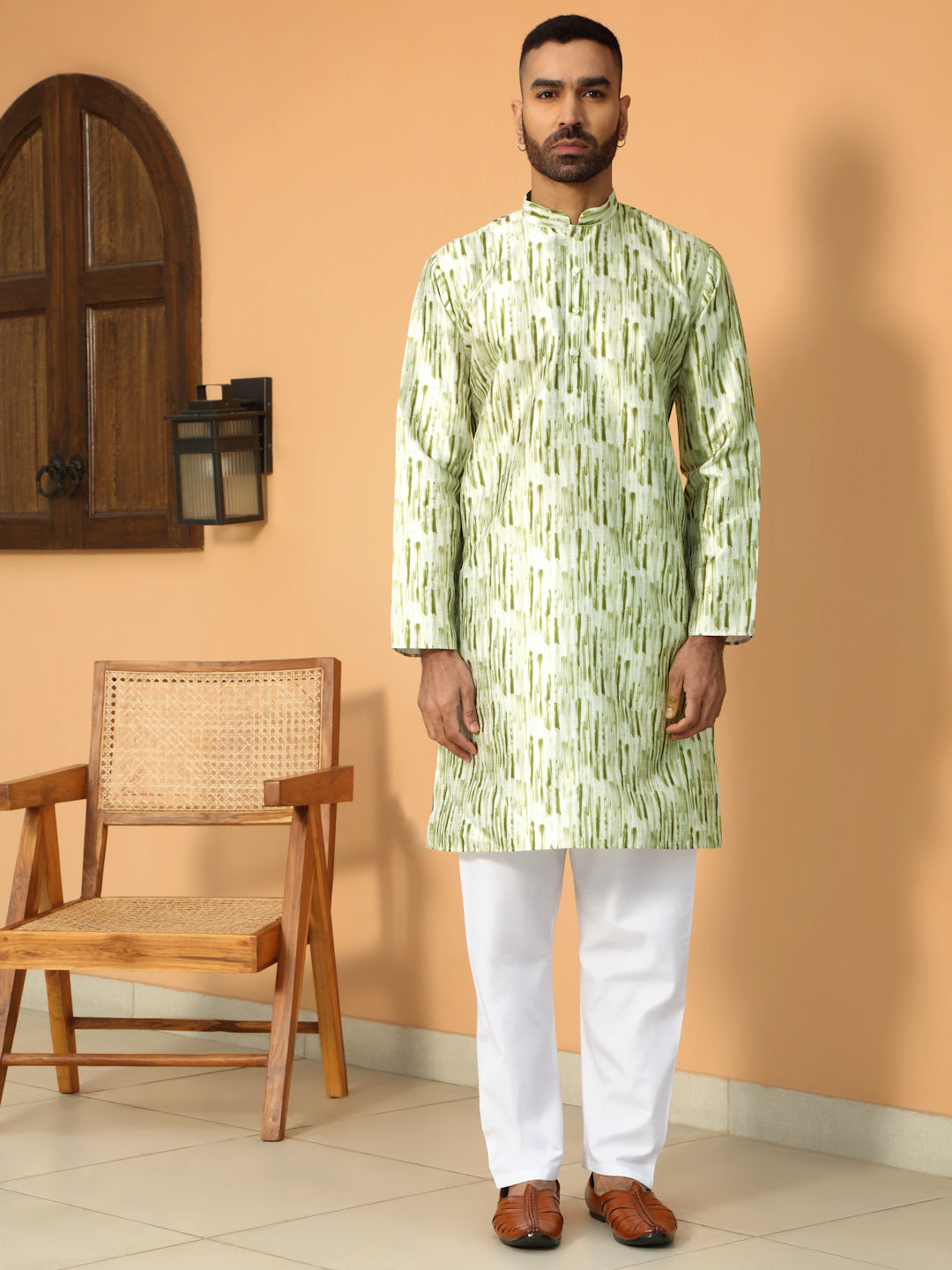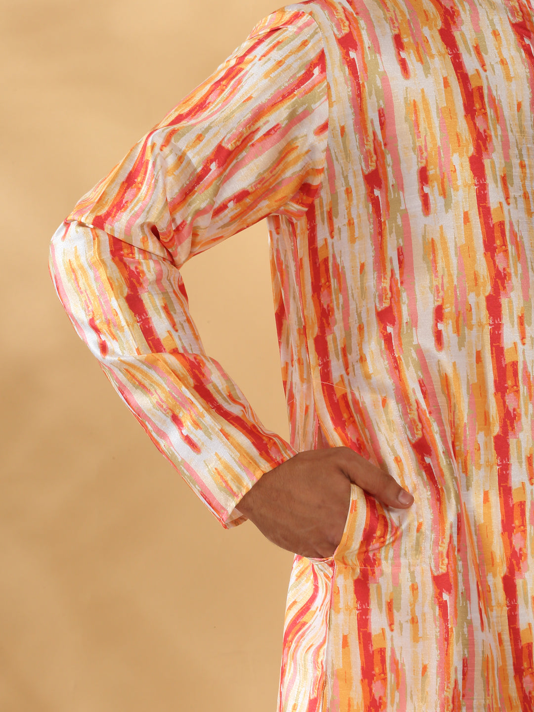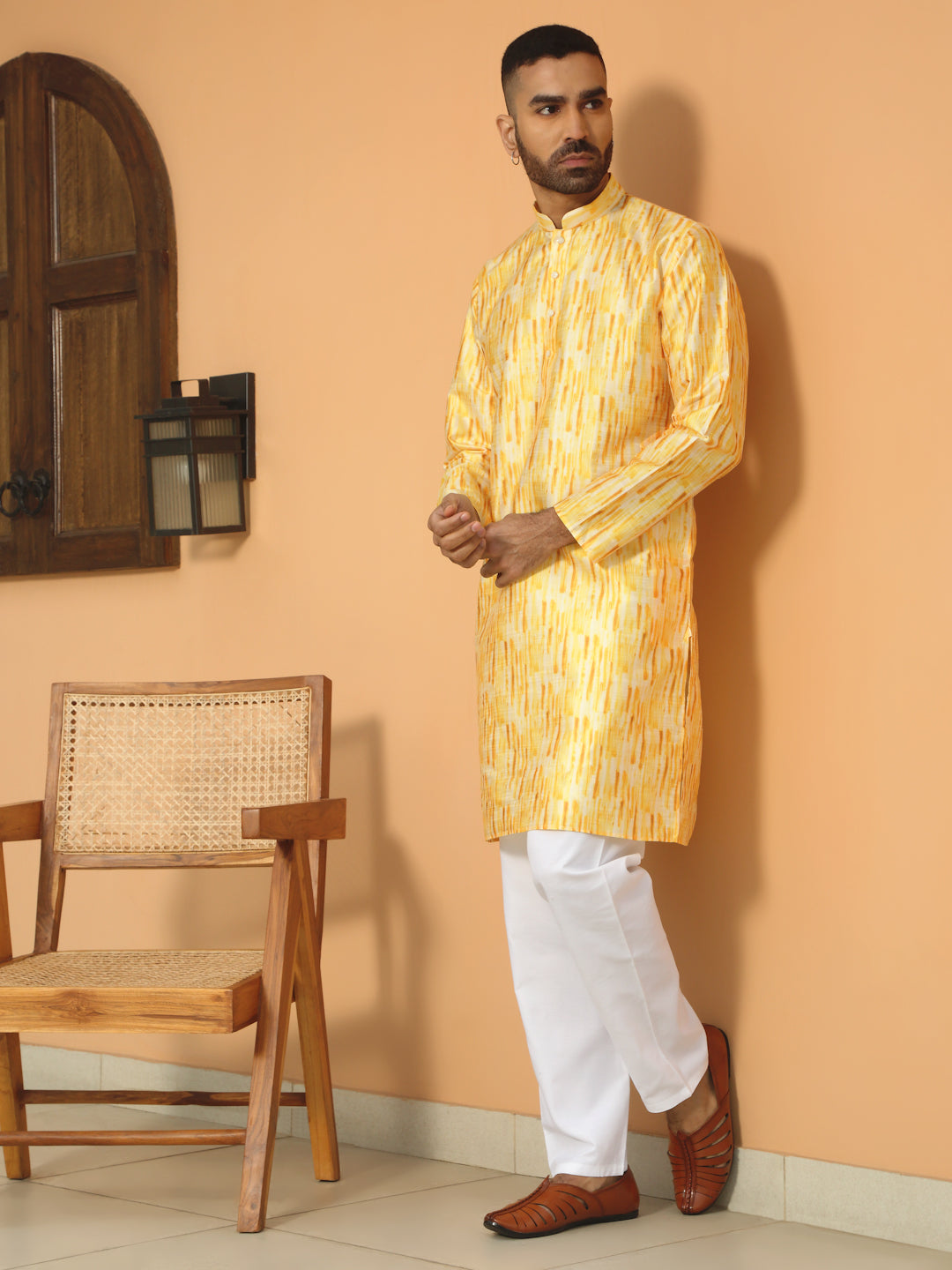 Silk Blend Tie-Dye Printed Kurta with white Elastic waistband Pyjama set