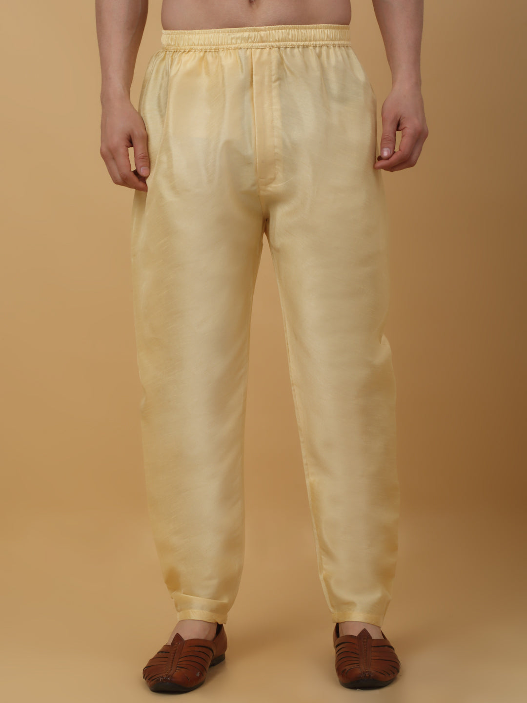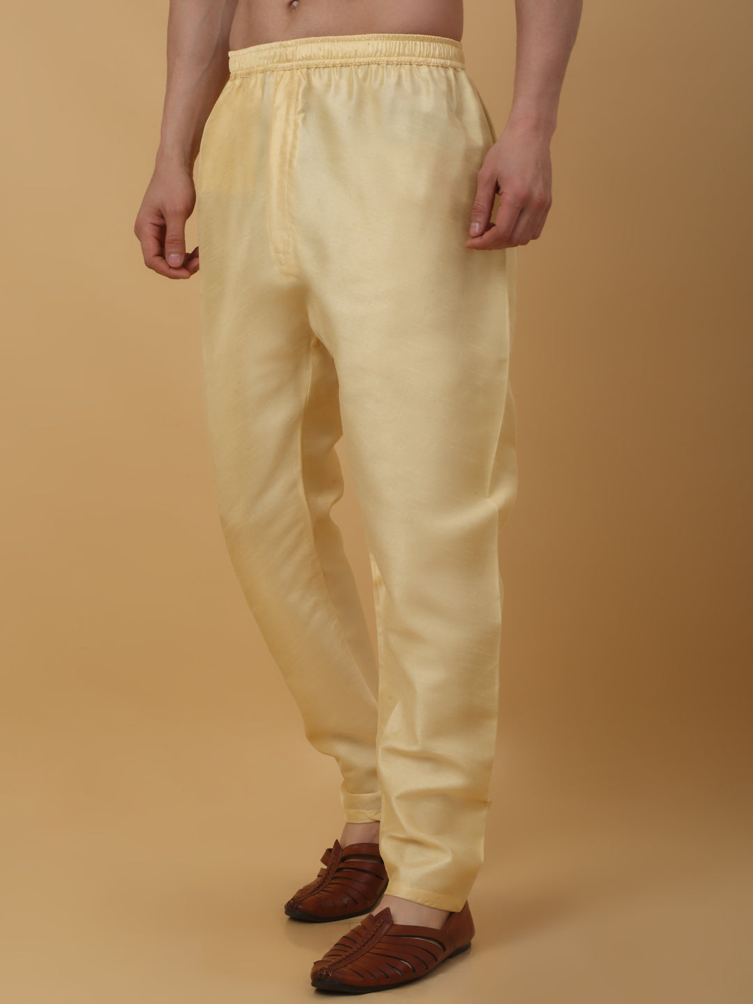 KRAFT INDIA Men's Silk Blend Beige Elastic Waistband Patiala Salwar For Kurta