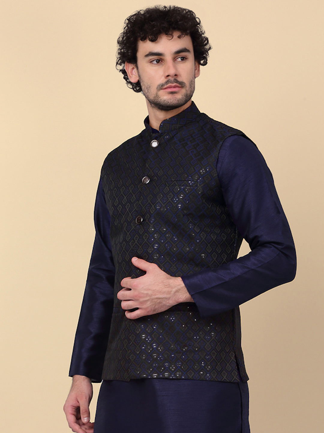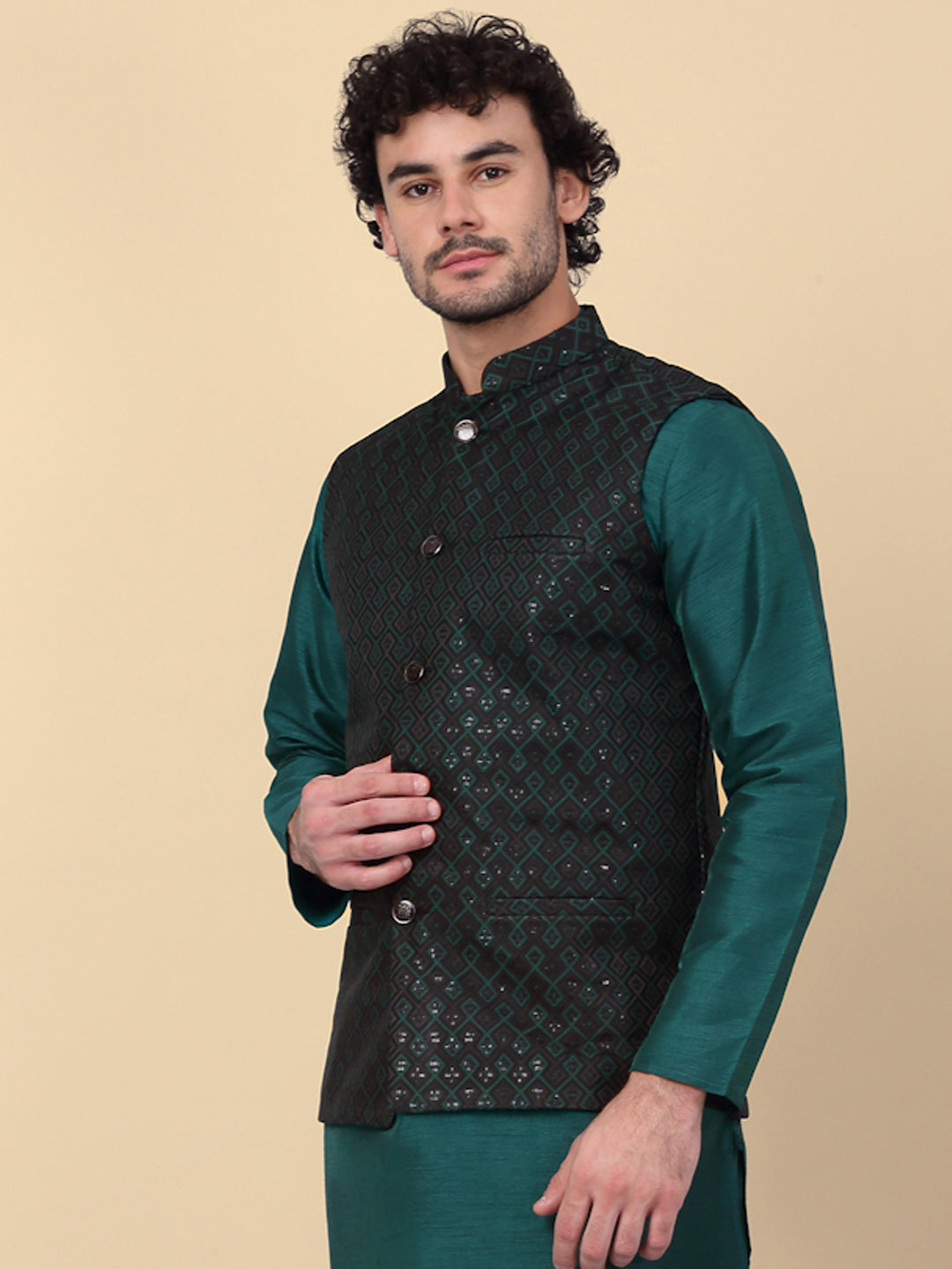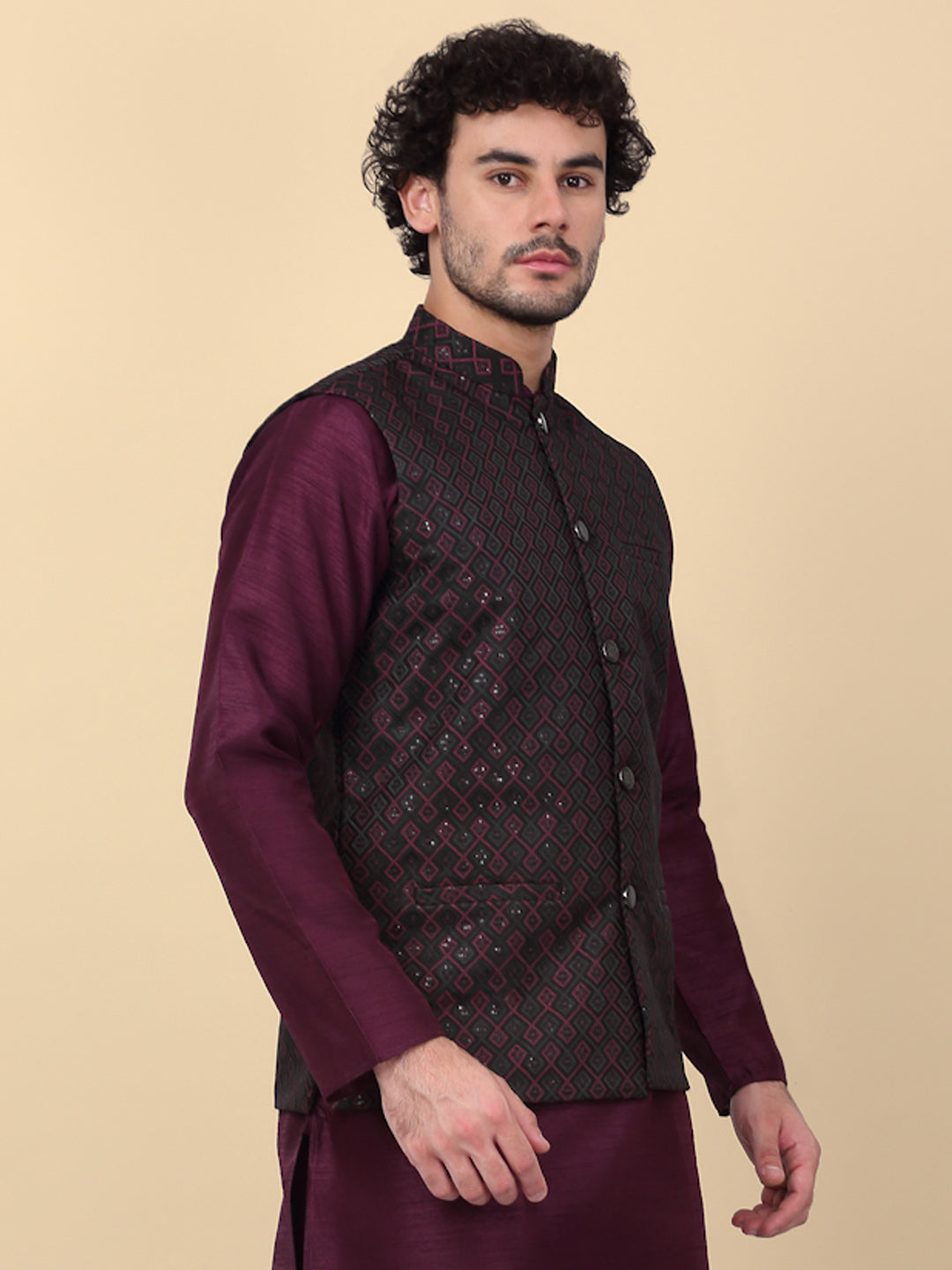 KRAFT INDIA Men's Embroidered Sequins Jacquard Nehru Jacket