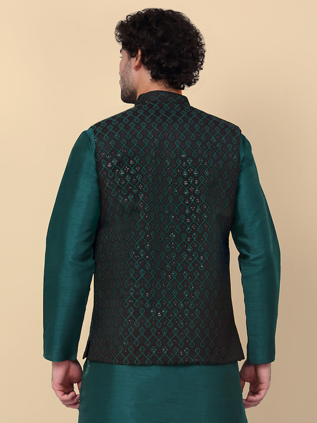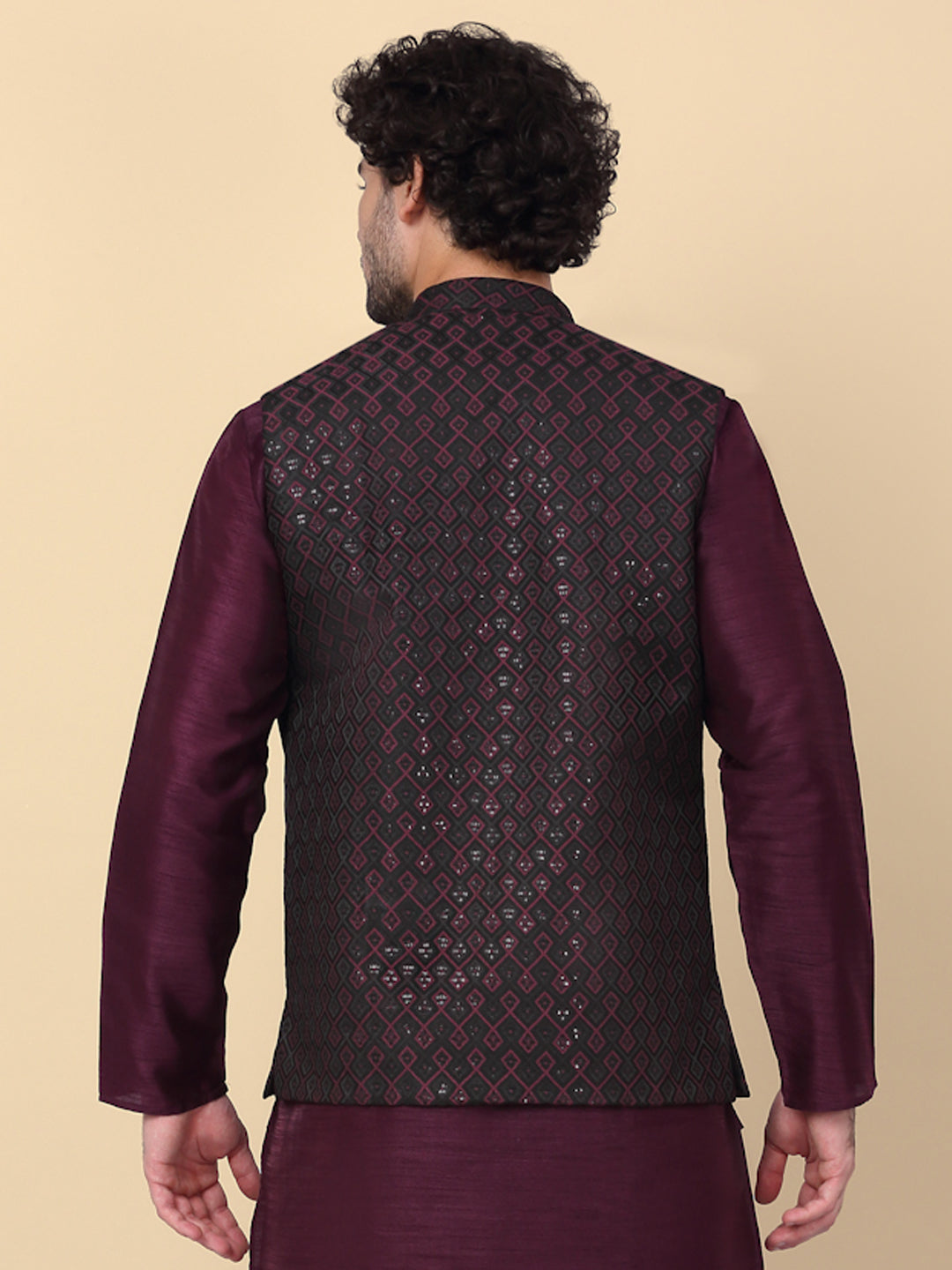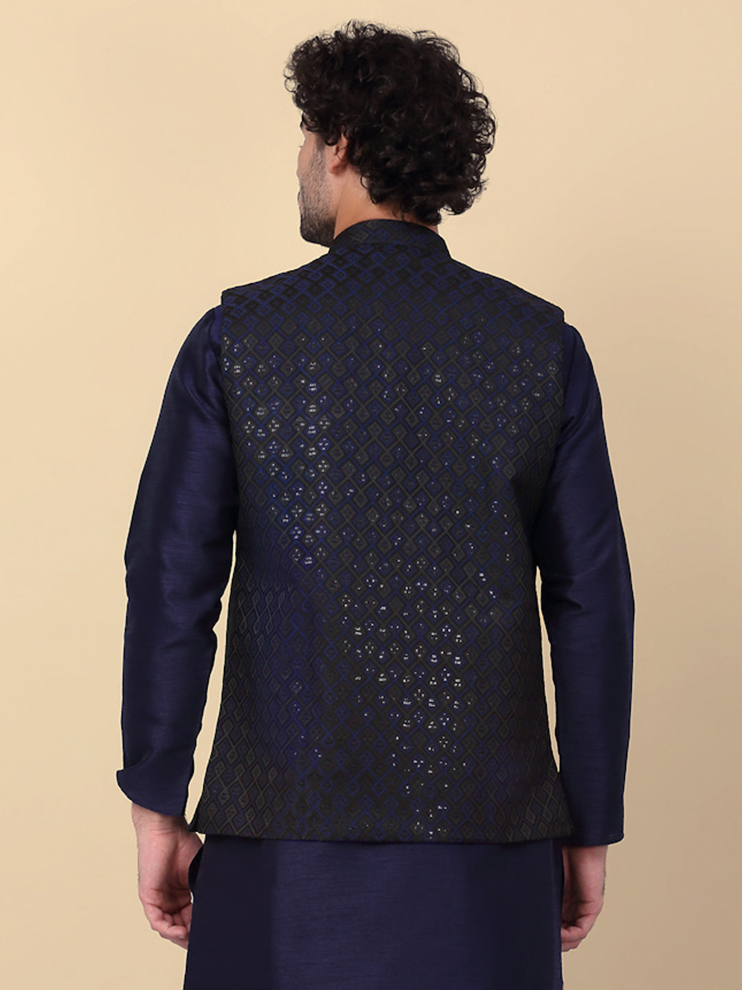 KRAFT INDIA Men's Embroidered Sequins Jacquard Nehru Jacket