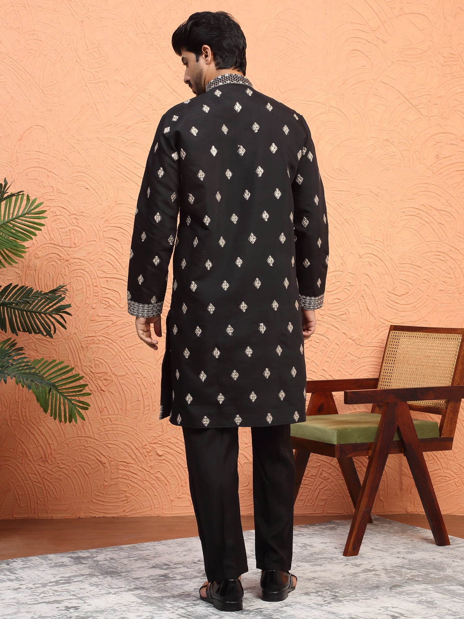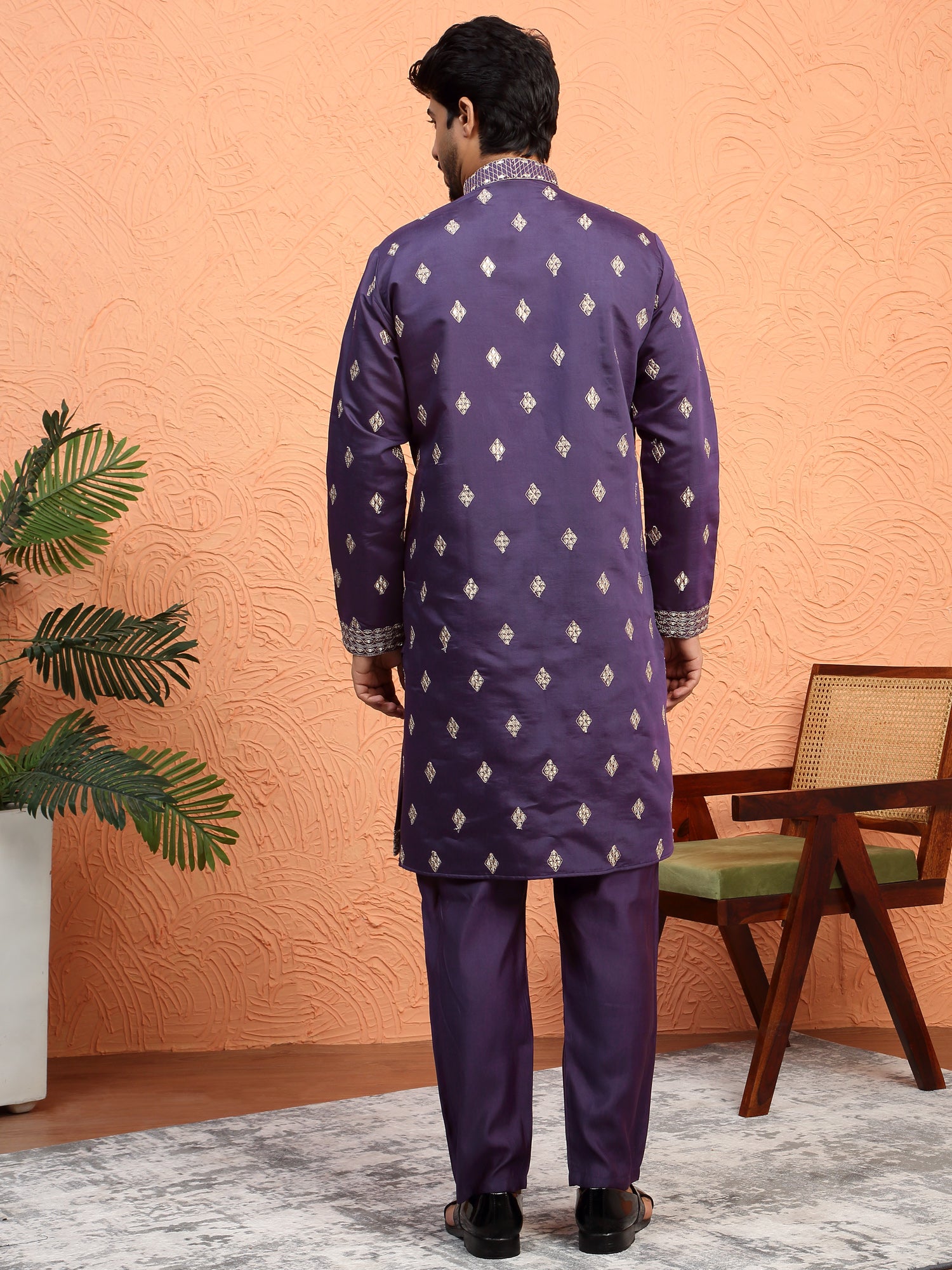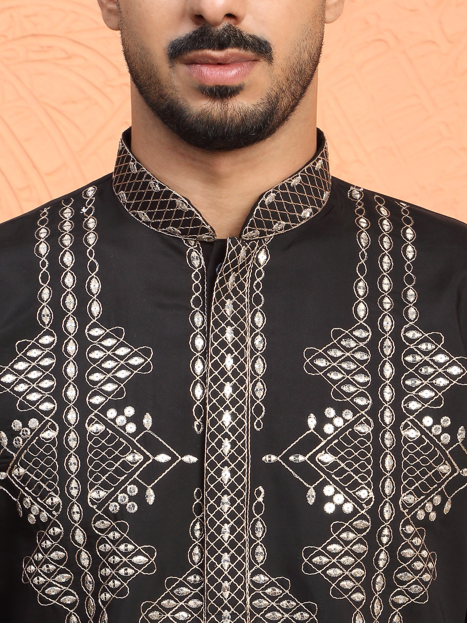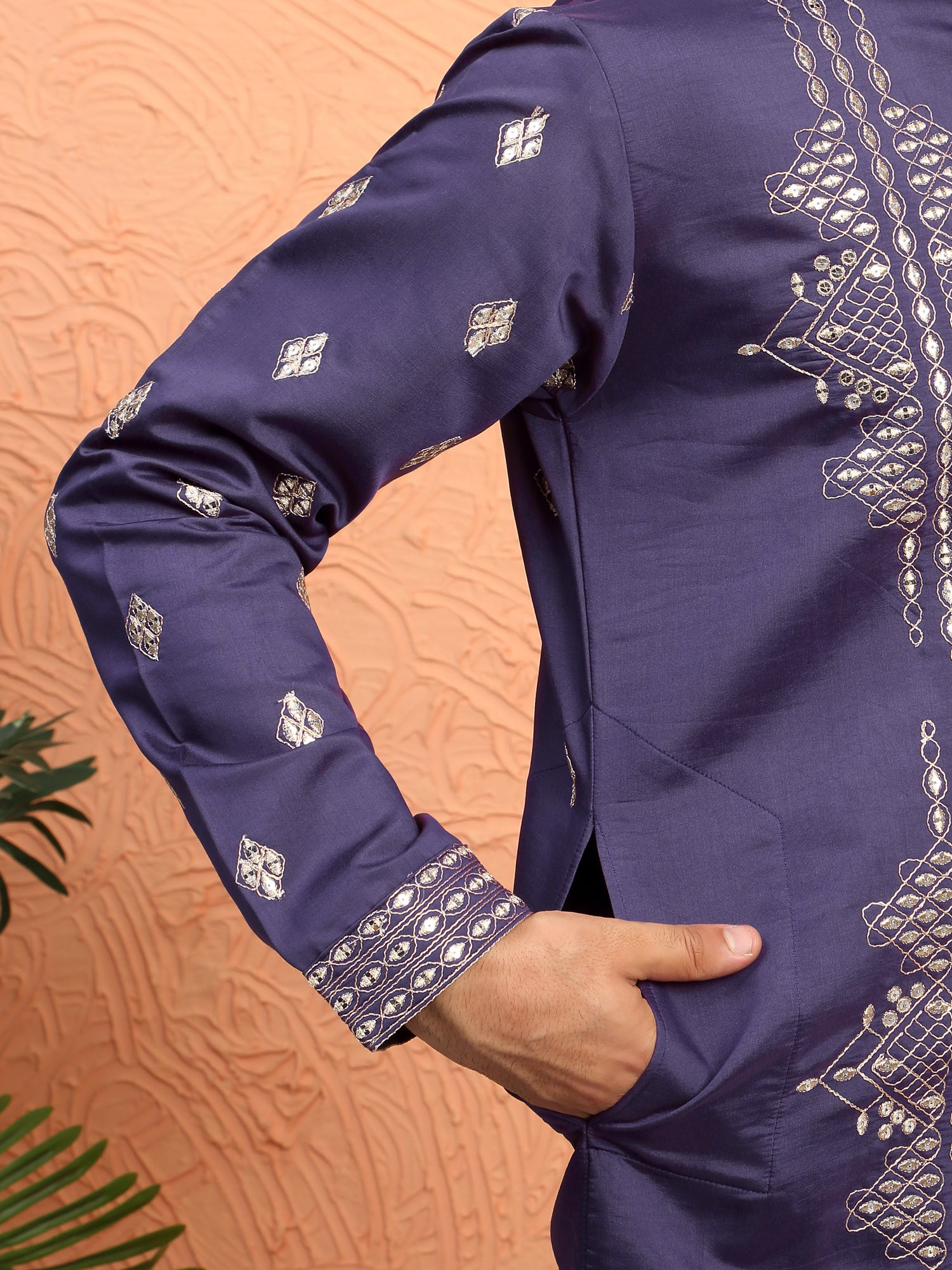Men's Cotton Silk Zari Sequenced Embroidered Kurta Trouser Pant Set With Matching Dupatta