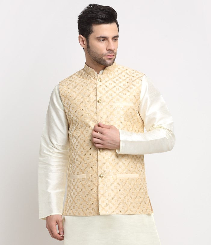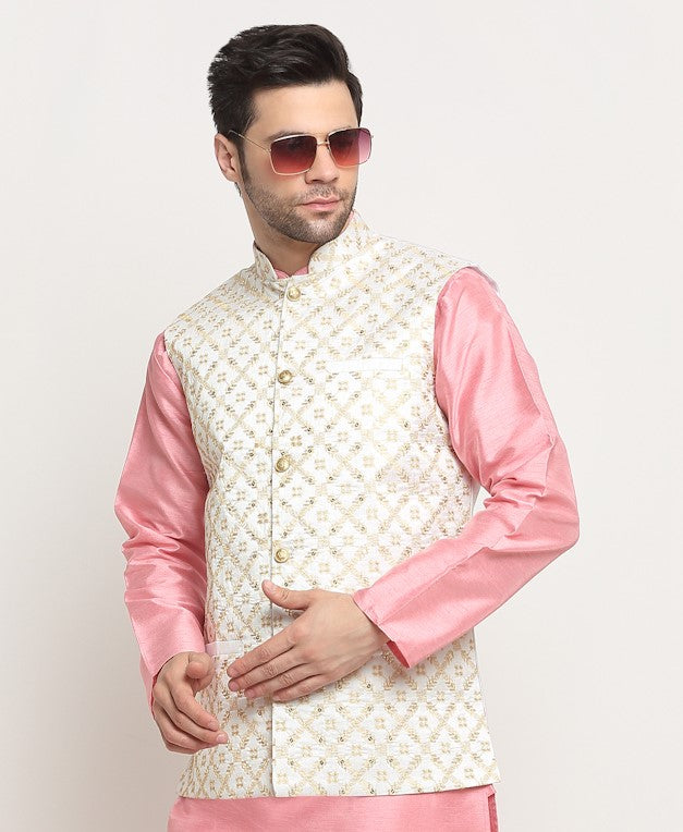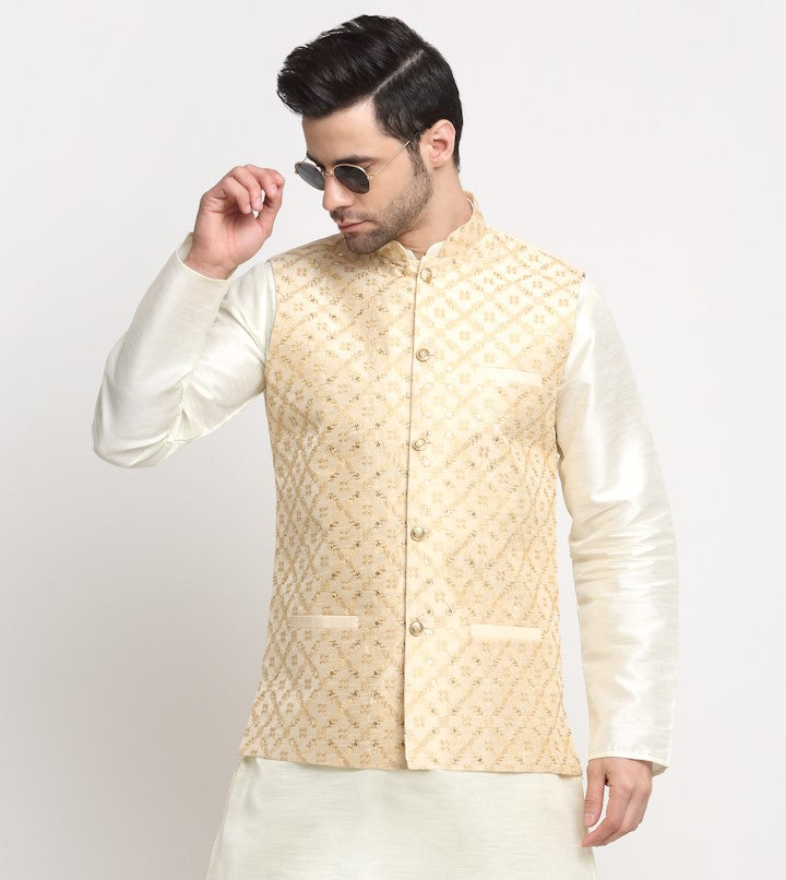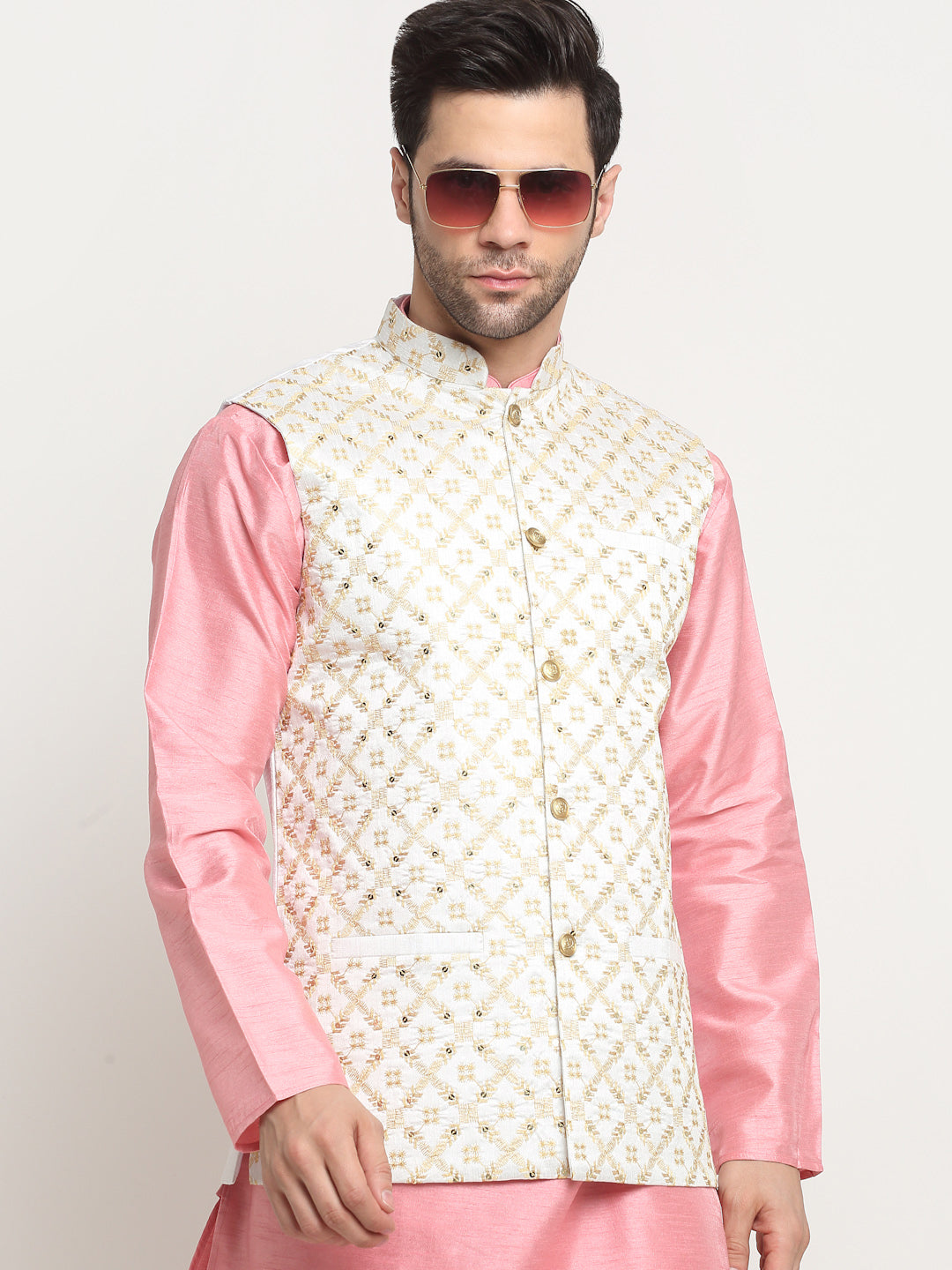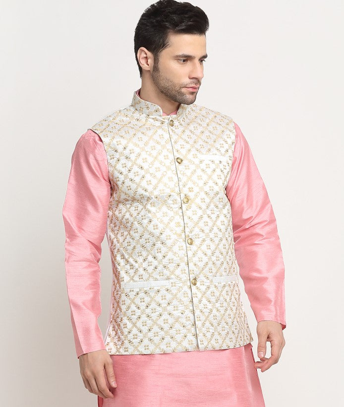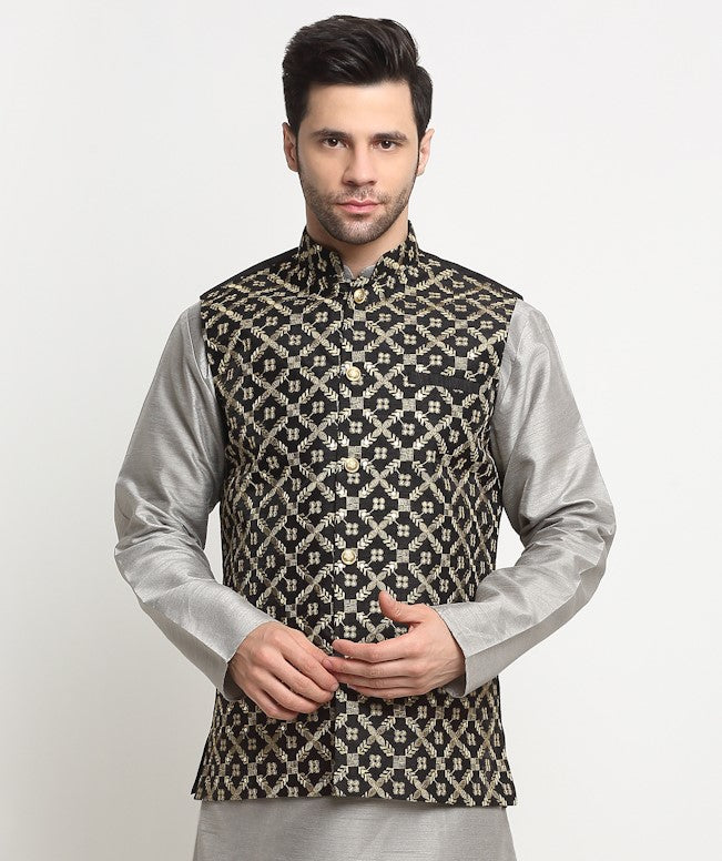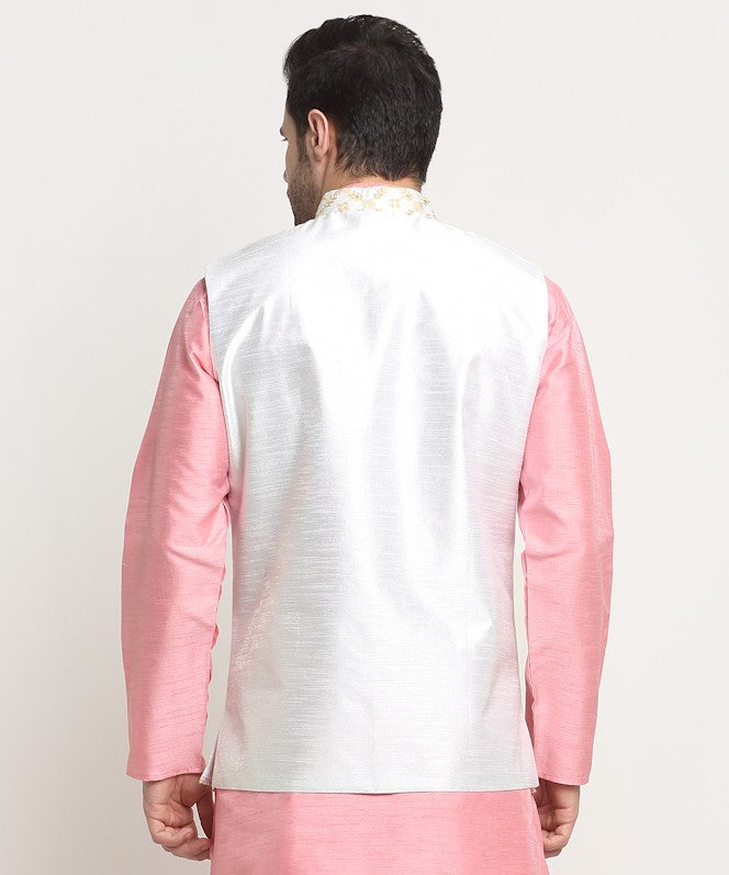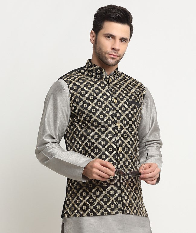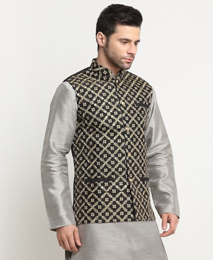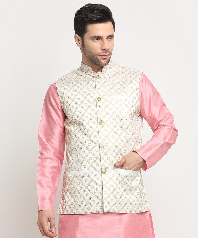 Men's Silk Embroidered Zari Nehru Jacket Only