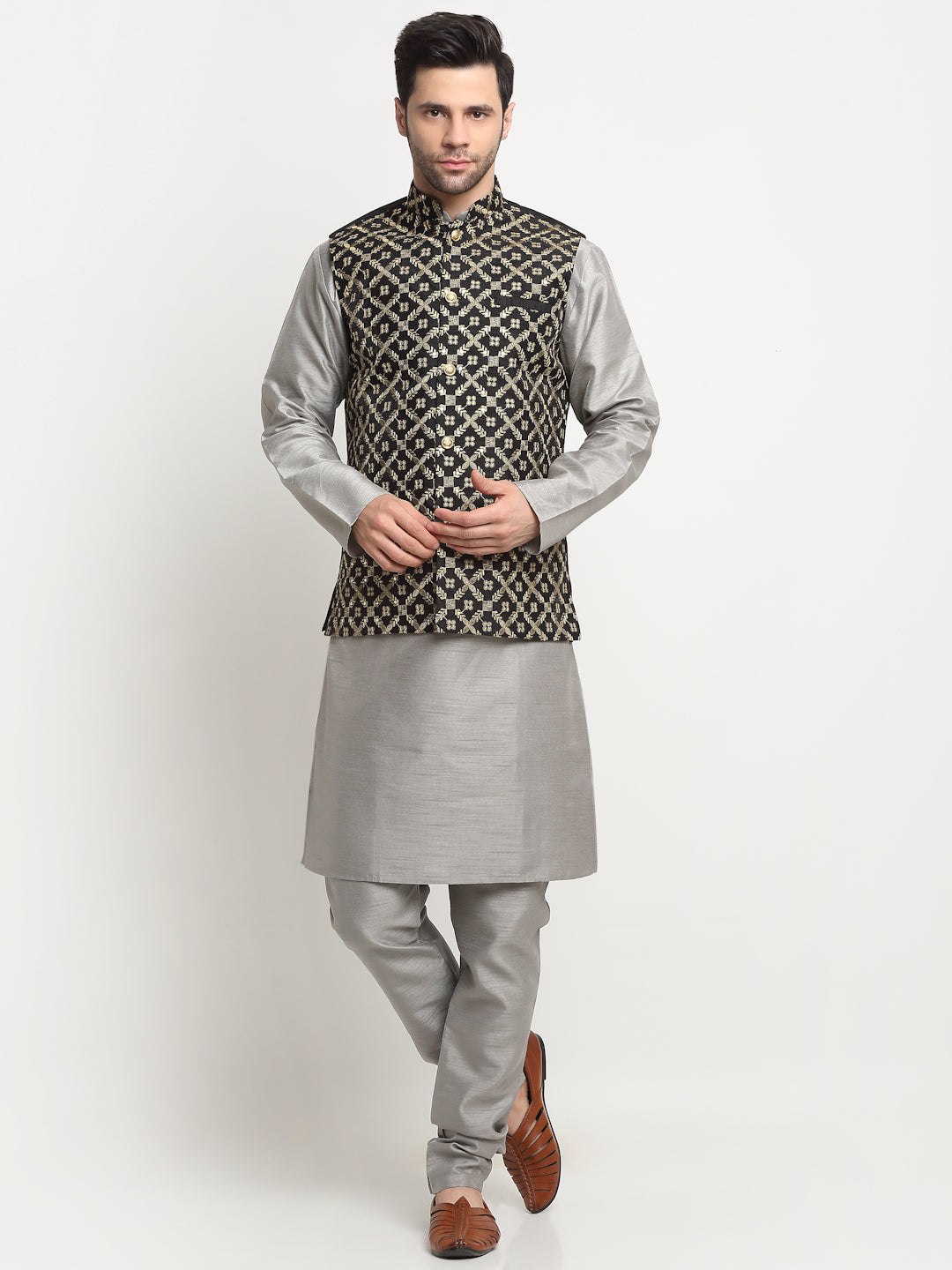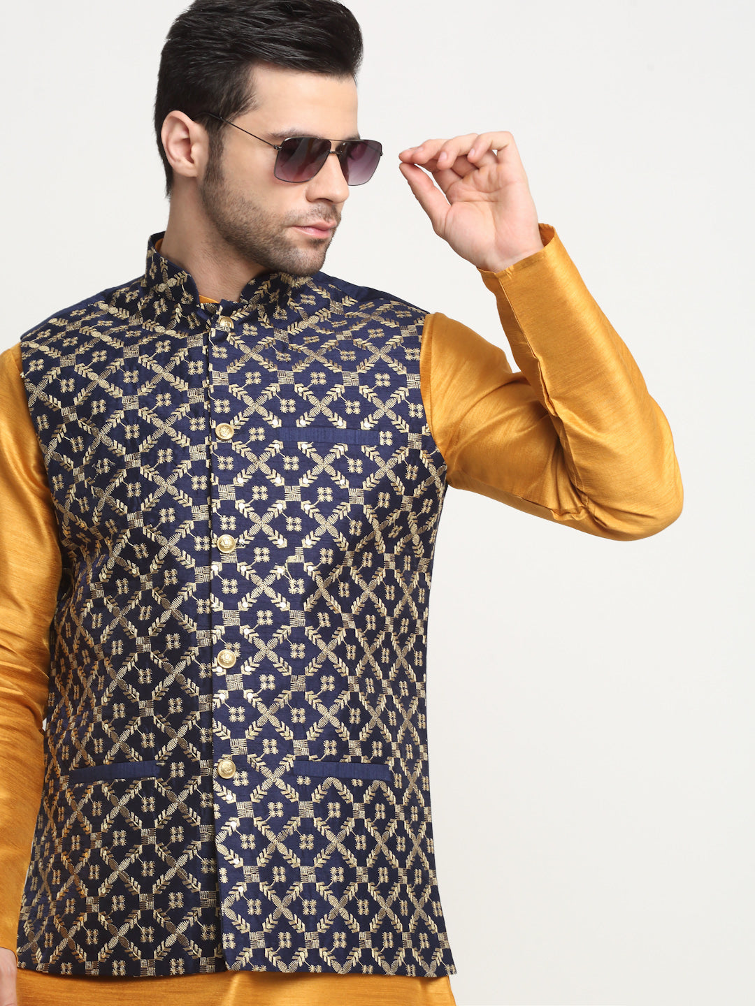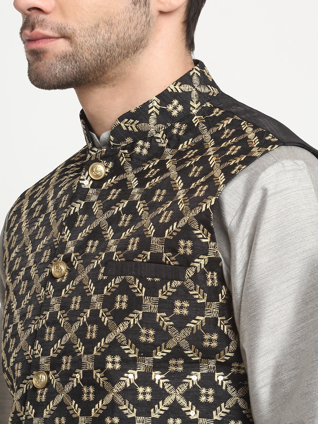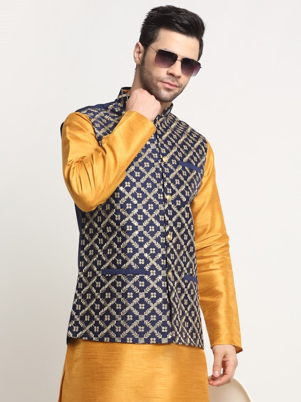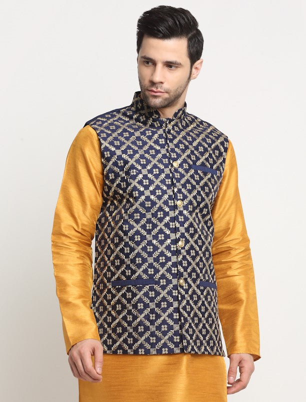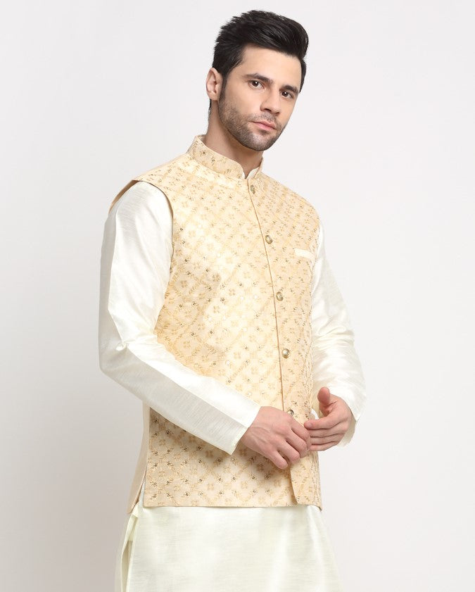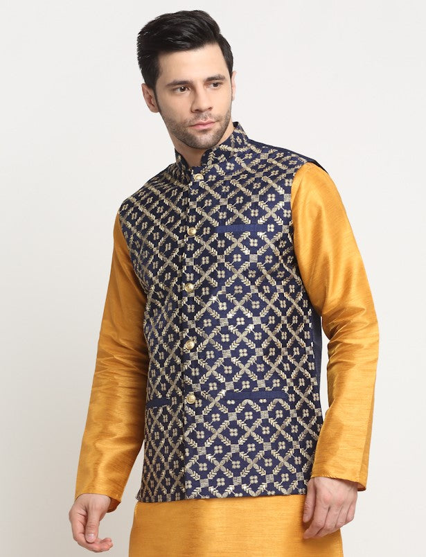 Men's Silk Embroidered Zari Nehru Jacket Only